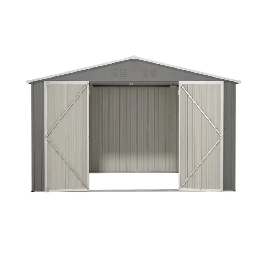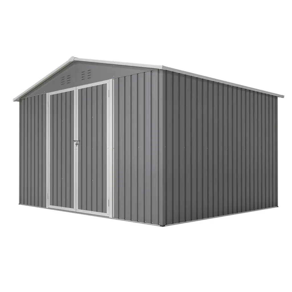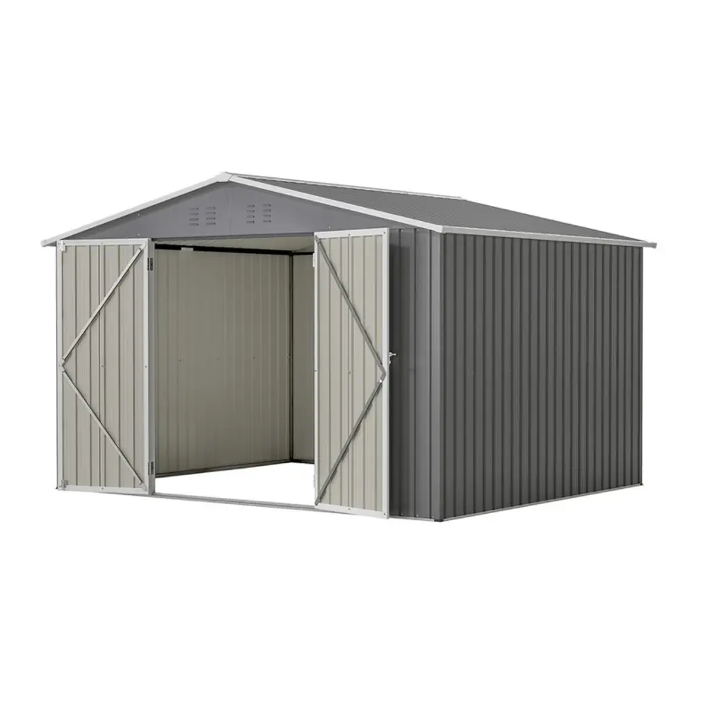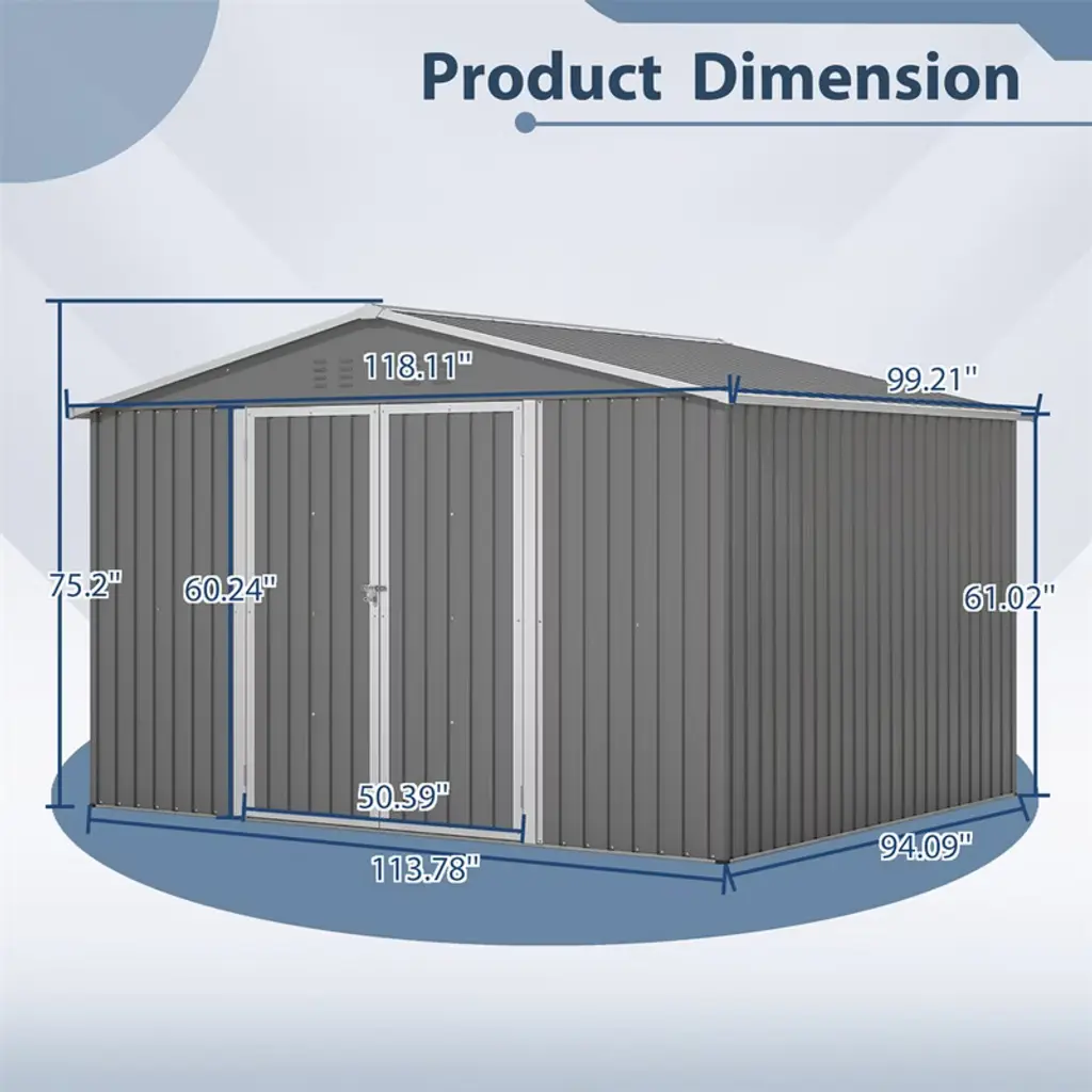 Description: Product Name:10X8 FT Outdoor Storage Shed, Metal Tool Sheds With Lockable Doors, All Weather Backyard Shed With Pitched Roof, Ventilation Vents Main Color:Gray Main Materials:Metal Simple Assembly Process: Clear instructions make assembly easy for 1-2 people. Pre-numbered parts and pre-cut panels simplify installation. Note: Shipped conveniently in 3 packages. Multi-Purpose Functionality: Whether for storage, pets, or waste, this shed offers practicality and organization to meet your outdoor needs effectively. Stay prepared and organized with this versatile solution. Packing list: 10X8 FT Outdoor Storage Shed, Metal Tool Sheds With Lockable Doors, All Weather Backyard Shed With Pitched Roof, Ventilation Vents x 1