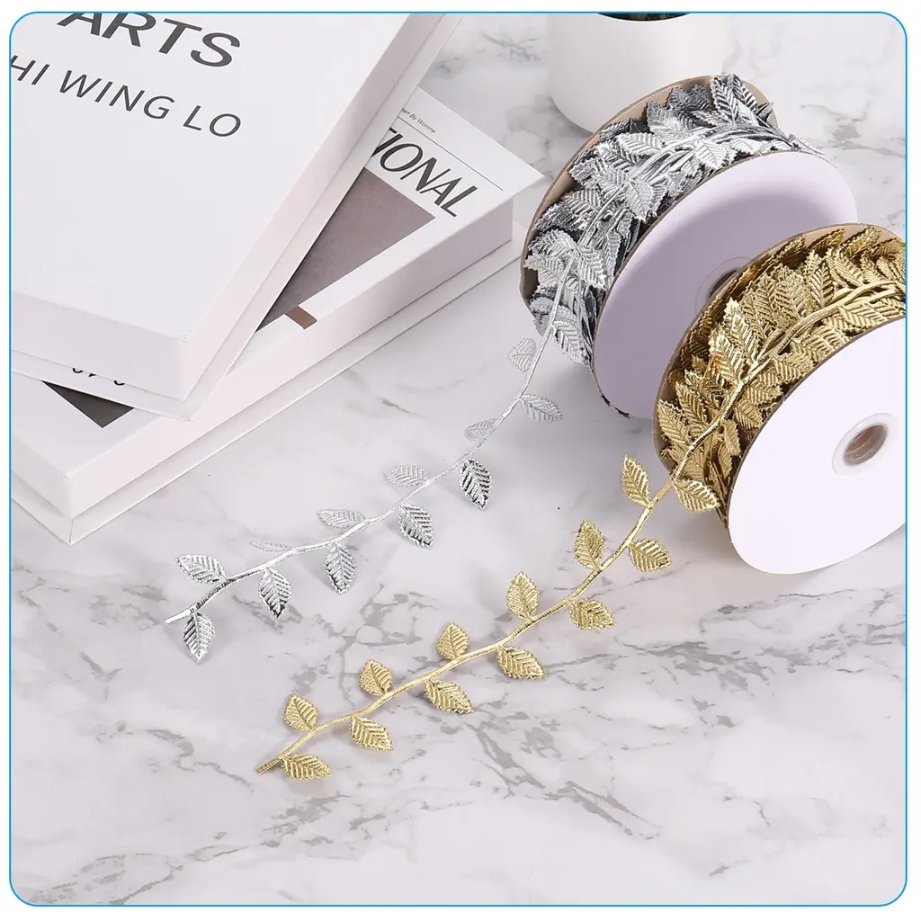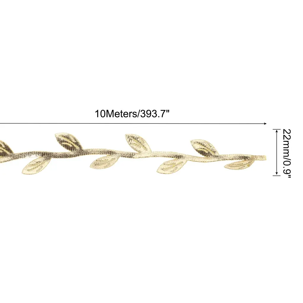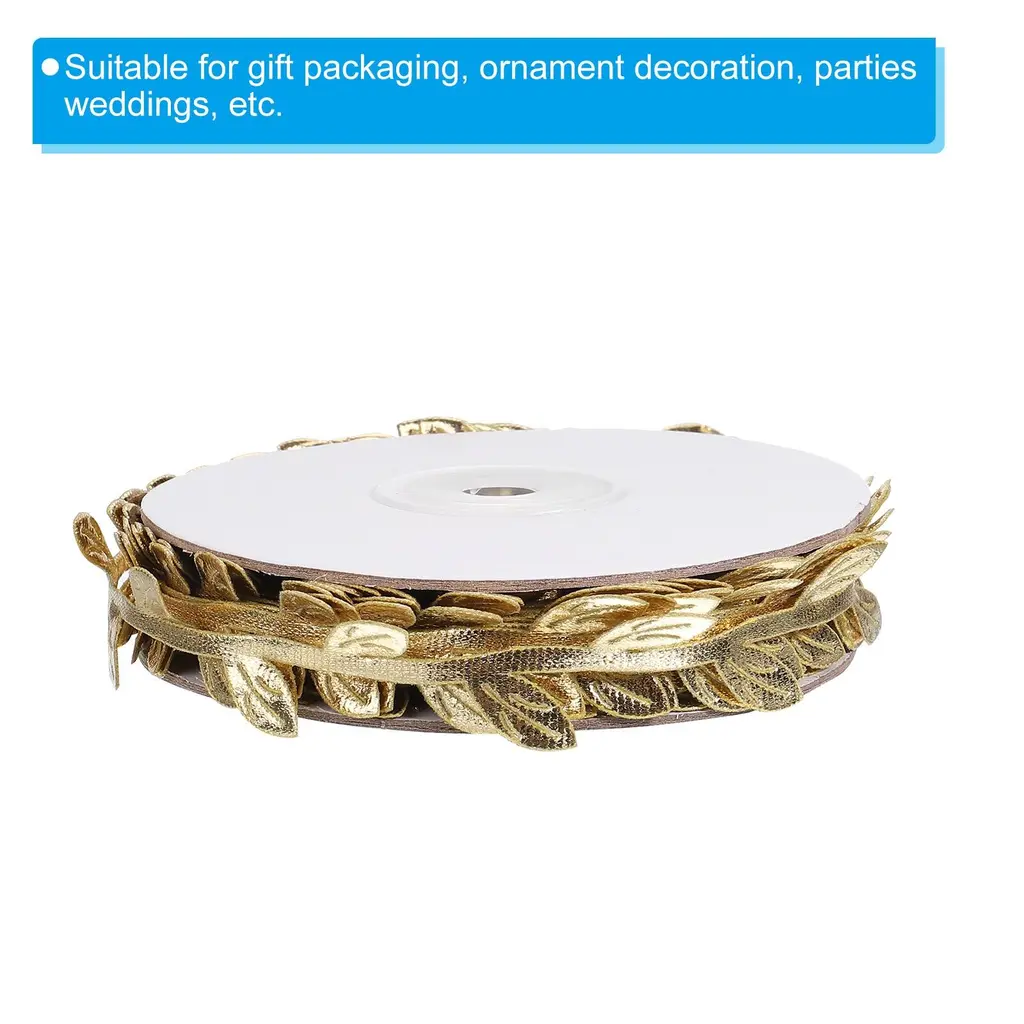 It is great for a wide range of craft projects, including floral arrangements, wreaths, gift wrapping, DIY decorations, scrapbooking. It provides endless creative possibilities. Suitable for birthdays, Halloween, Christmas, parties, bridal showers, and fall weddings. It provides endless creative possibilities.SpecificationColor: Gold ToneMaterial: PolyesterSize: 10 Meters x 22mm / 393.7 x 0.9 inch(L*W)Packing List: 1 x Decorative Leaves RibbonAdvantageNatural and Realistic: This leaf ribbon features a natural and realistic design, with detailed leaves that resemble the beauty of fresh foliage, adding a touch of nature to your craft projects.Quality Material: Crafted from durable materials, this leaf ribbon is flexible and resistant to fraying or fading, ensuring long-lasting use and vibrant color retention.InstructionThe leaf plant ribbon is easy to cut and shape, allowing you to customize its length and create desired designs and arrangements. Its flexibility makes it effortless to incorporate into various crafts.NOTE: Depending on your project, you may need different widths or lengths. Determine the appropriate size to achieve the desired effect and ensure it will be sufficient for your needs.