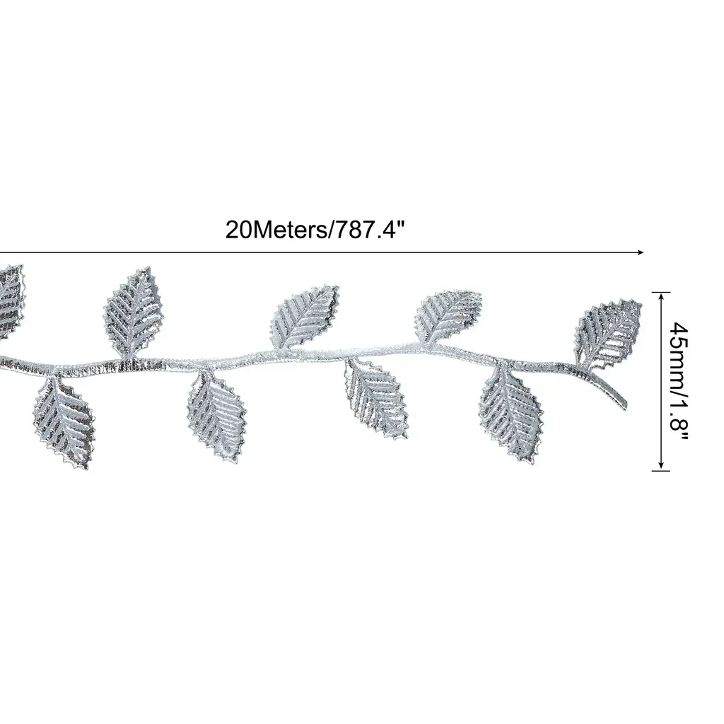 11 Yards Leaf Ribbon, Leaves Trim Rope Leaf String, Style 2 - Silver