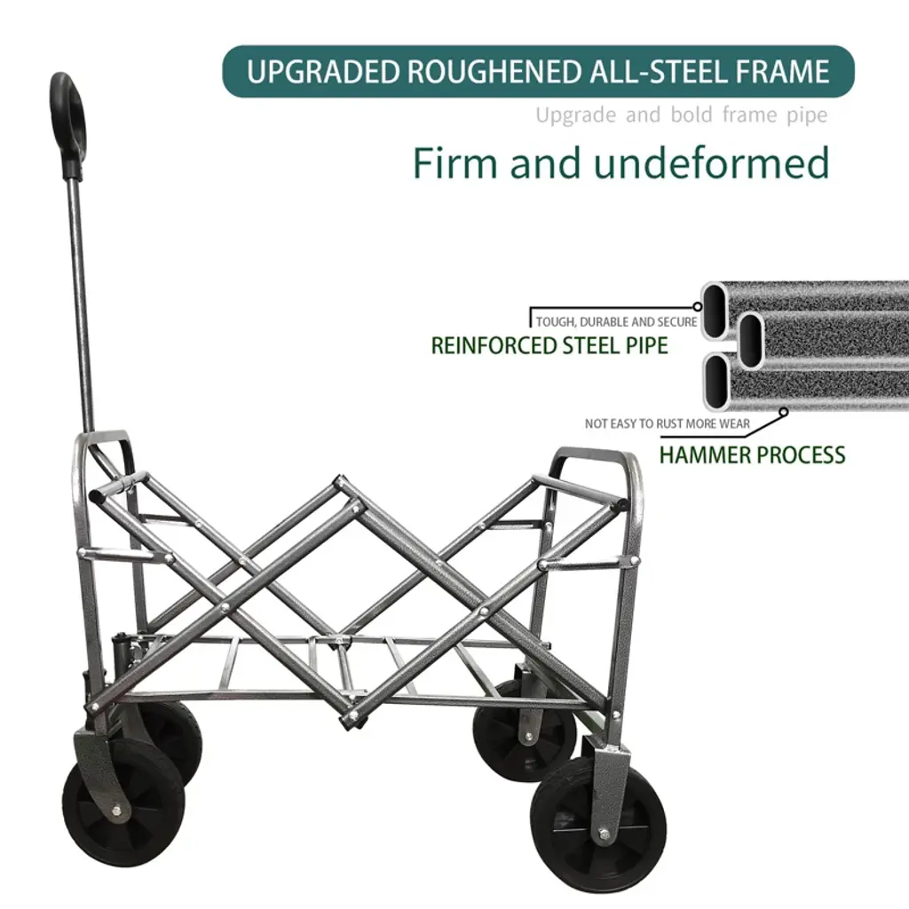 110lb Heavy-duty Folding Beach Wagon Cart - 4 All-terrain Wheels, Collapsible Utility Cart For Sand/camping/gardening, Compact Trunk Storage