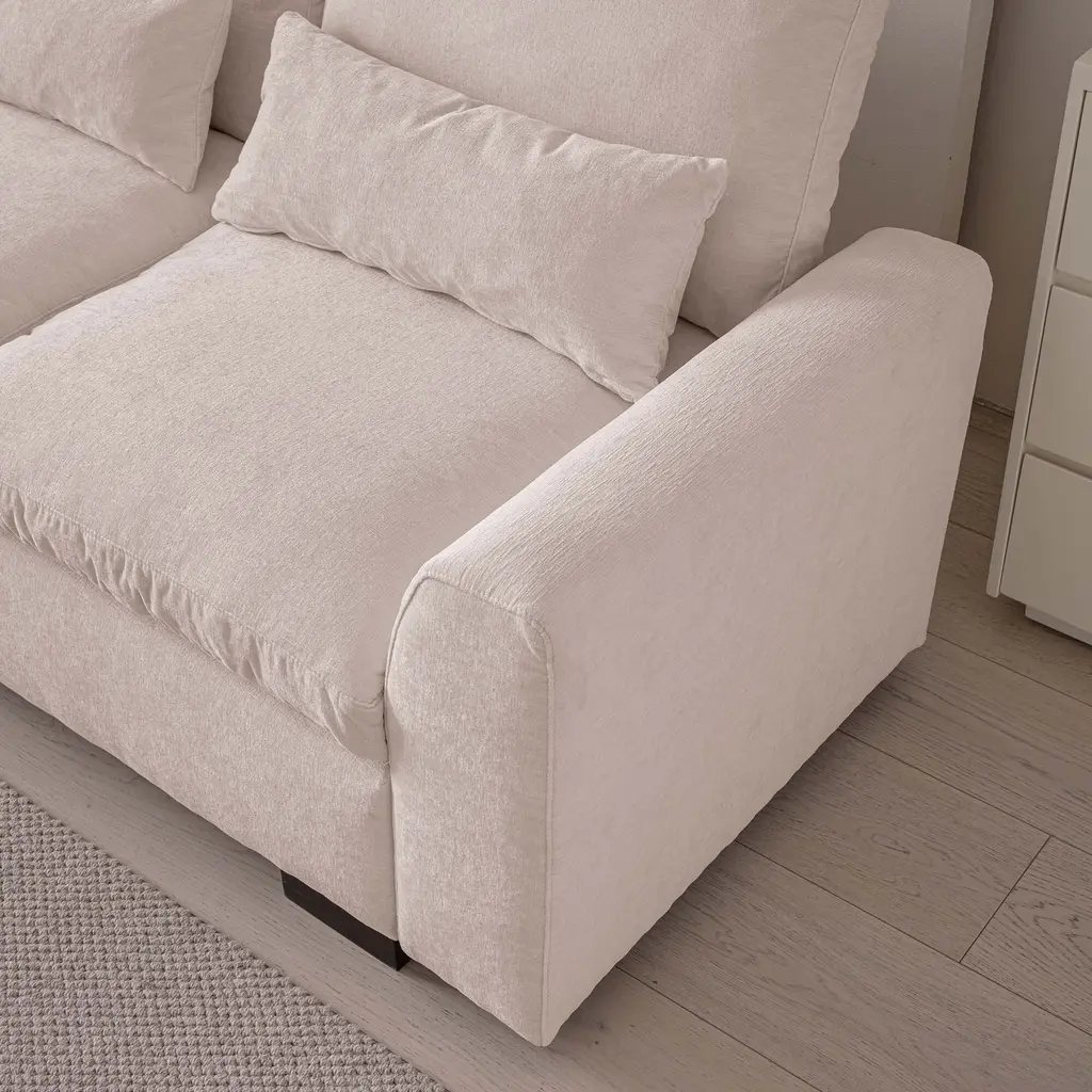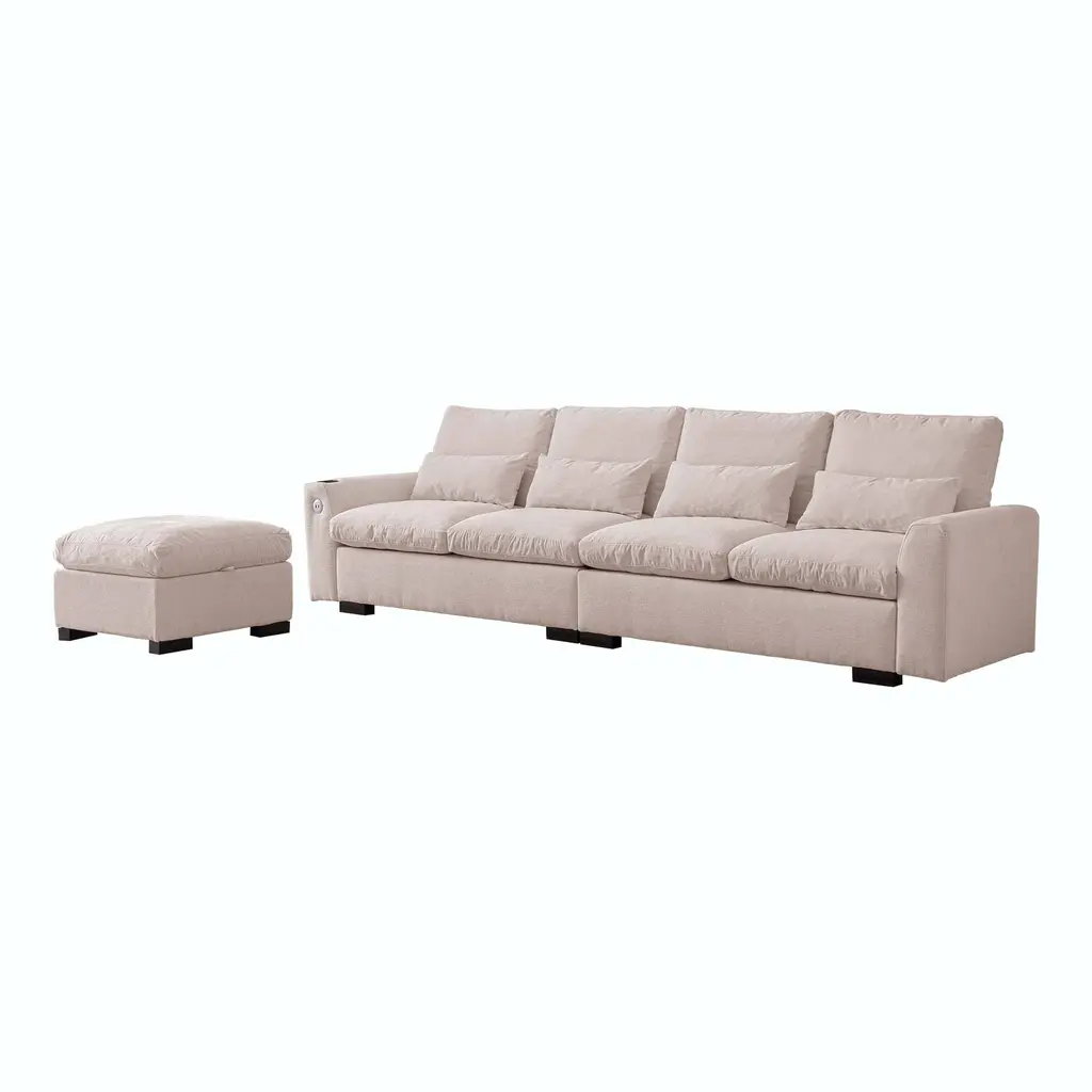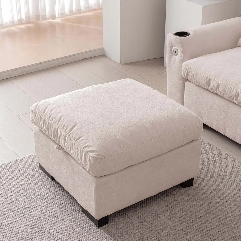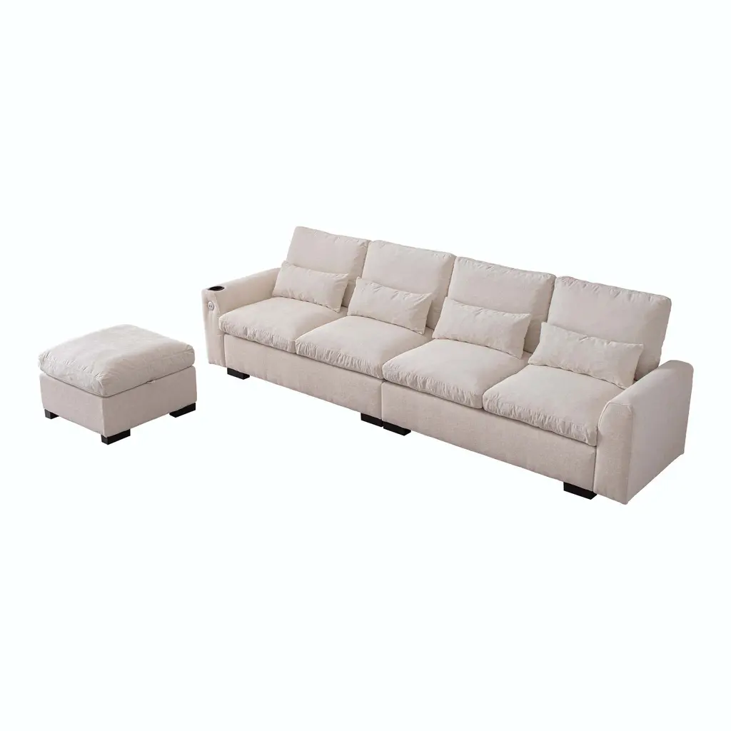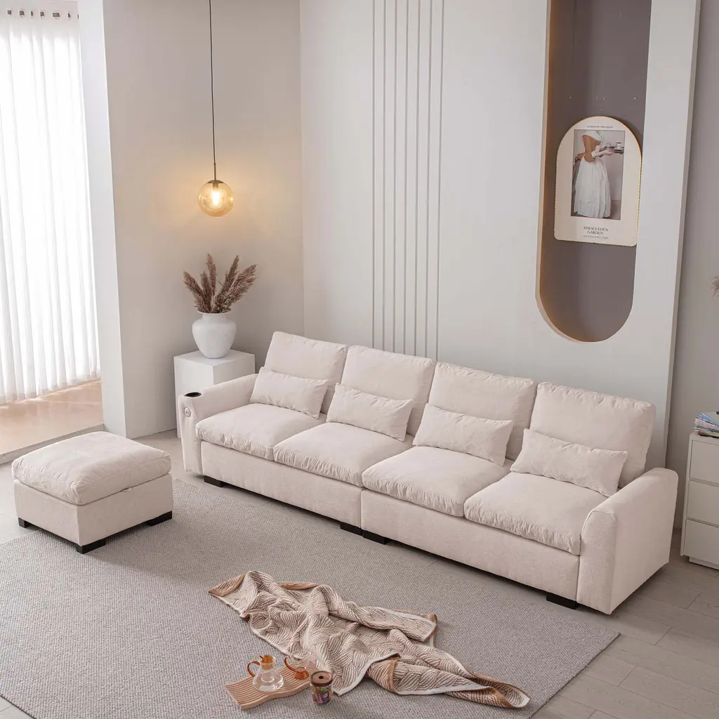 114.5"Modern Modular L Shaped Chenille Sofa Couch Reversible Ottoman With Storage Removable and Washable Cushions Sofa With USB Ports & Cup Holder For Living Room 【Product Features】 【Notes】1.Size Notice:Manual measurement has been used, there may be some reasonable errort, thanks for your understanding.2.Color Notice:Due to factors such as display equipment and shooting environment, the color of the item may be slightly different from the picture, which is a normal phenomenon, please refer to the actual item3.Assembly Notice:Please read assemble manual in advance. Please do not over-tighten nuts, as this may cause distortion or breakage.4.It is recommended to put a layer of foam or soft cushion on the floor when installing to avoid scratching the floor.5.If the item has any defects, damage or missing parts, please contact us with pictures or videos so that we can understand your needs and help you quickly, and always remember to retain its original packaging to ensure any return requests. We will try our best to solve any problems you may have.6.If you receive the wrong product, please attach the product picture, the infographic of the outer package and the picture containing SKUs, so that we can verify and quickly deal with it for you【Keep it looking its best】1.Fabric furniture Care;Dust regularly. Clean gently with a clean, slightly damp cloth. Professional cleaning is recommended.2.Wood Furniture Care:We recommend dusting frequently with a clean, soft, dry, lint-free cloth. Clean the surface by rubbing in the direction of the grain and wipe dry.3.Avoid direct sunlight.4.Avoid the use of all chemicals, household cleaners, abrasives, or cleaners that contain lemon, vinegar, or other acids that may damage the finish.5.Do not place hot appliances, such as curling irons and hot hair dryers directly on the countertop.6.Spot clean using distilled water and water-based cleaning agents, foam or mild water-free cleaning solvents. 7.Always test a small inconspicuous area first.8.Hardware may loosen over time; periodically check to make sure all connections are tight