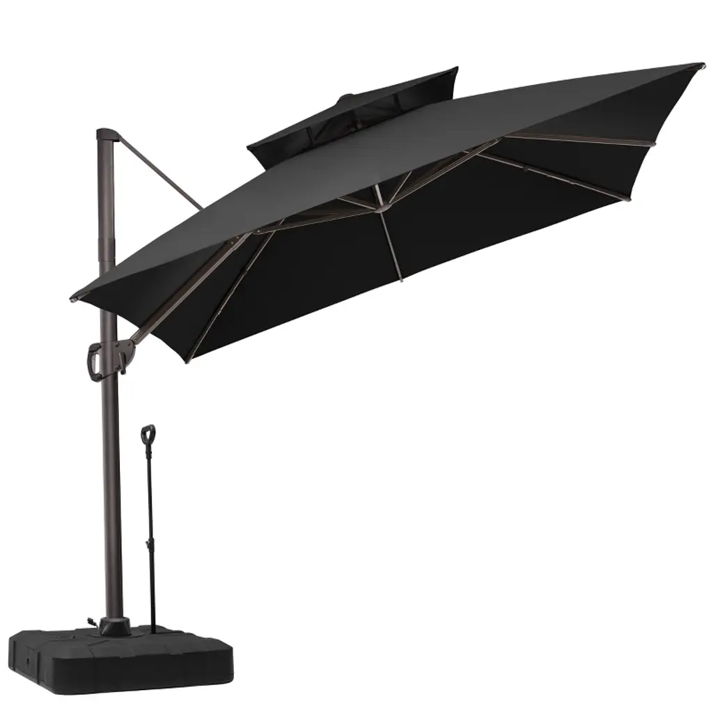 11ft Square Double Top Cantilever Umbrella Outdoor 360° Rotation 6 Heights Adjustable Offset Umbrella With Metal Pole Cantilever With Base