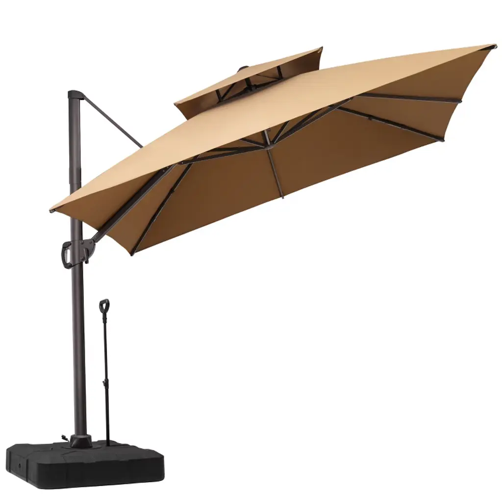 11ft Square Double Top Cantilever Umbrella Outdoor 360° Rotation 6 Heights Adjustable Offset Umbrella With Metal Pole Cantilever With Base
