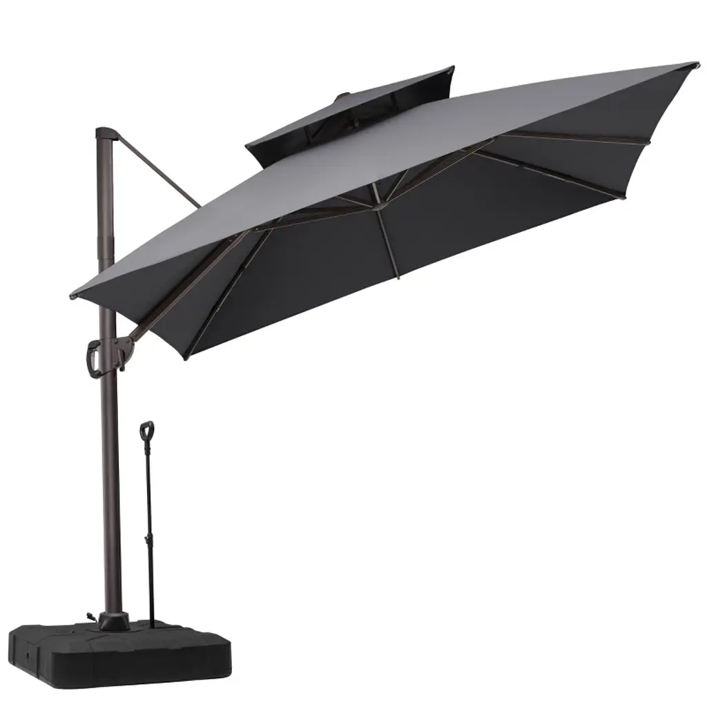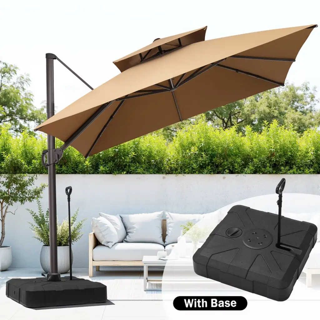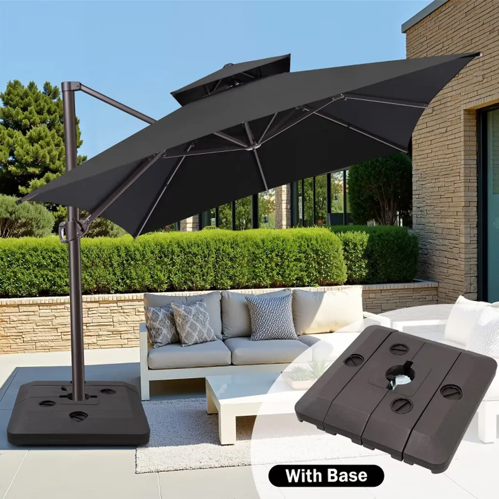 11ft Square Double Top Cantilever Umbrella Outdoor 360° Rotation 6 Heights Adjustable Offset Umbrella With Metal Pole Cantilever With Base