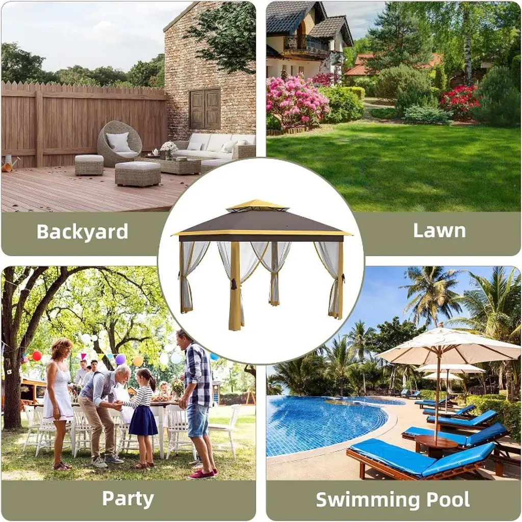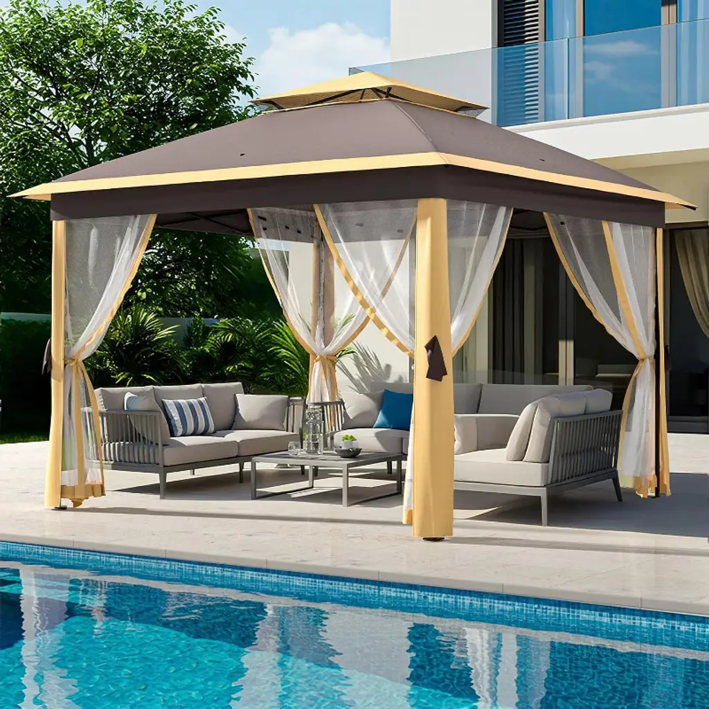 11x11 Ft Heavy-duty Outdoor Gazebo Pavilion - Double Roof W/ Mosquito Netting, All-weather Metal Frame For Patio, Garden & Deck