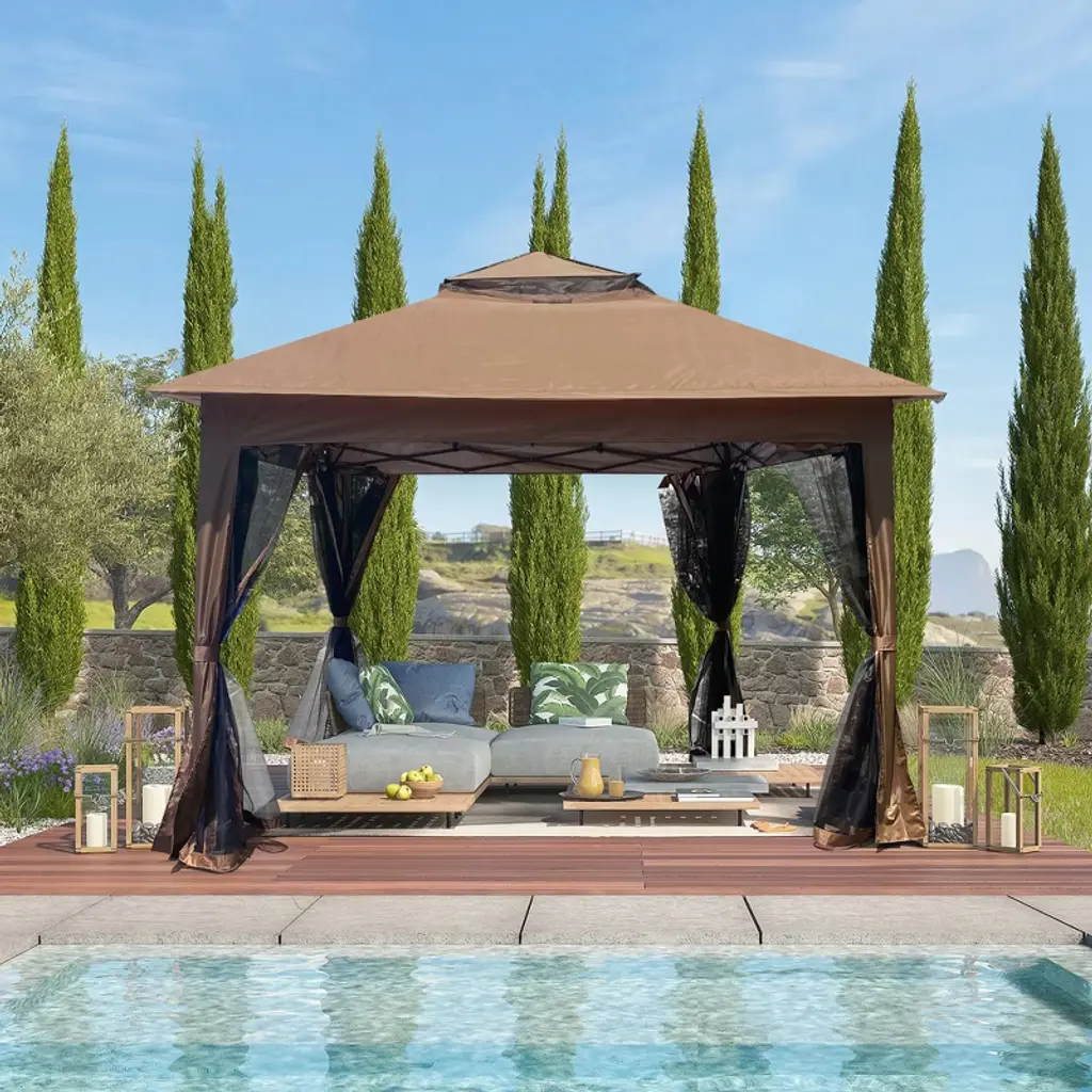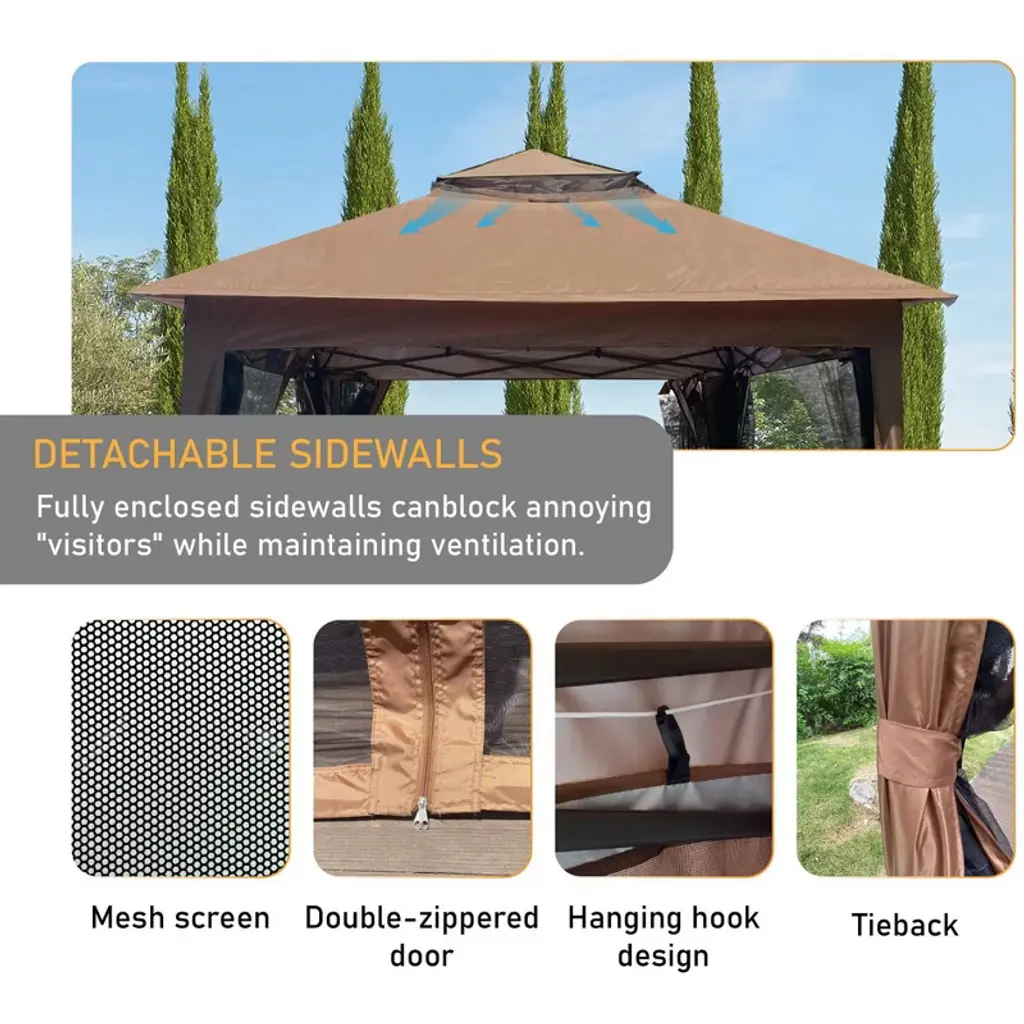 11x11ft Pop-up Outdoor Gazebo Canopy With Removable Netting, 2-tier Soft Top Tent For Patio, Backyard, Garden, Camping, With 4 Sandbags