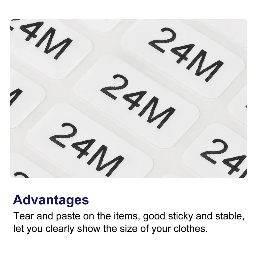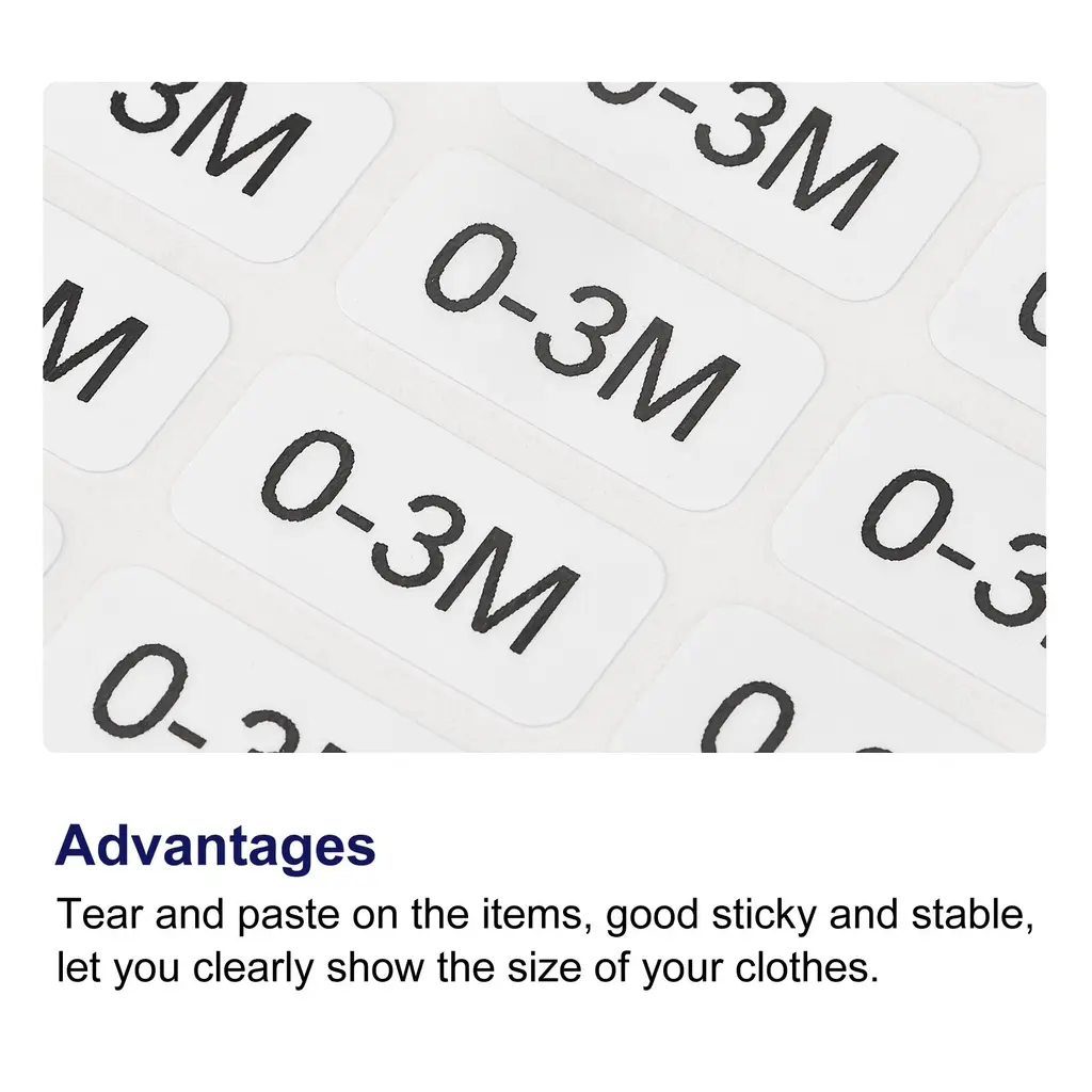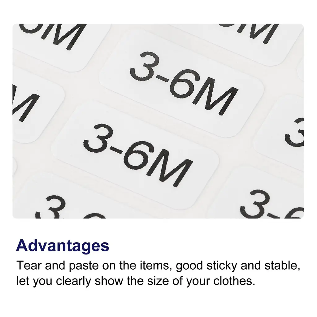 These small self-adhesive sticker labels are perfect for clothing stores, retail stores, markets, supermarkets, and factories. They can be easily stuck to any surface, such as boxes, cartons, paper, and glass. The package includes 2 sheets of clothes size stickers, with a total of 1000 small labels. The labels are rectangular in shape, with black lettering on a white background. Each sticker measures 2x1cm (0.8x0.4 inch). These stickers are tear-resistant and provide a strong and stable adhesion, allowing you to clearly display the size of your clothes. They are easy to stick and can be easily peeled off when needed. Organize your clothes and enhance the shopping experience with these convenient and practical size stickers. Before ordering, make sure to check the size and count to meet your needs.Features: