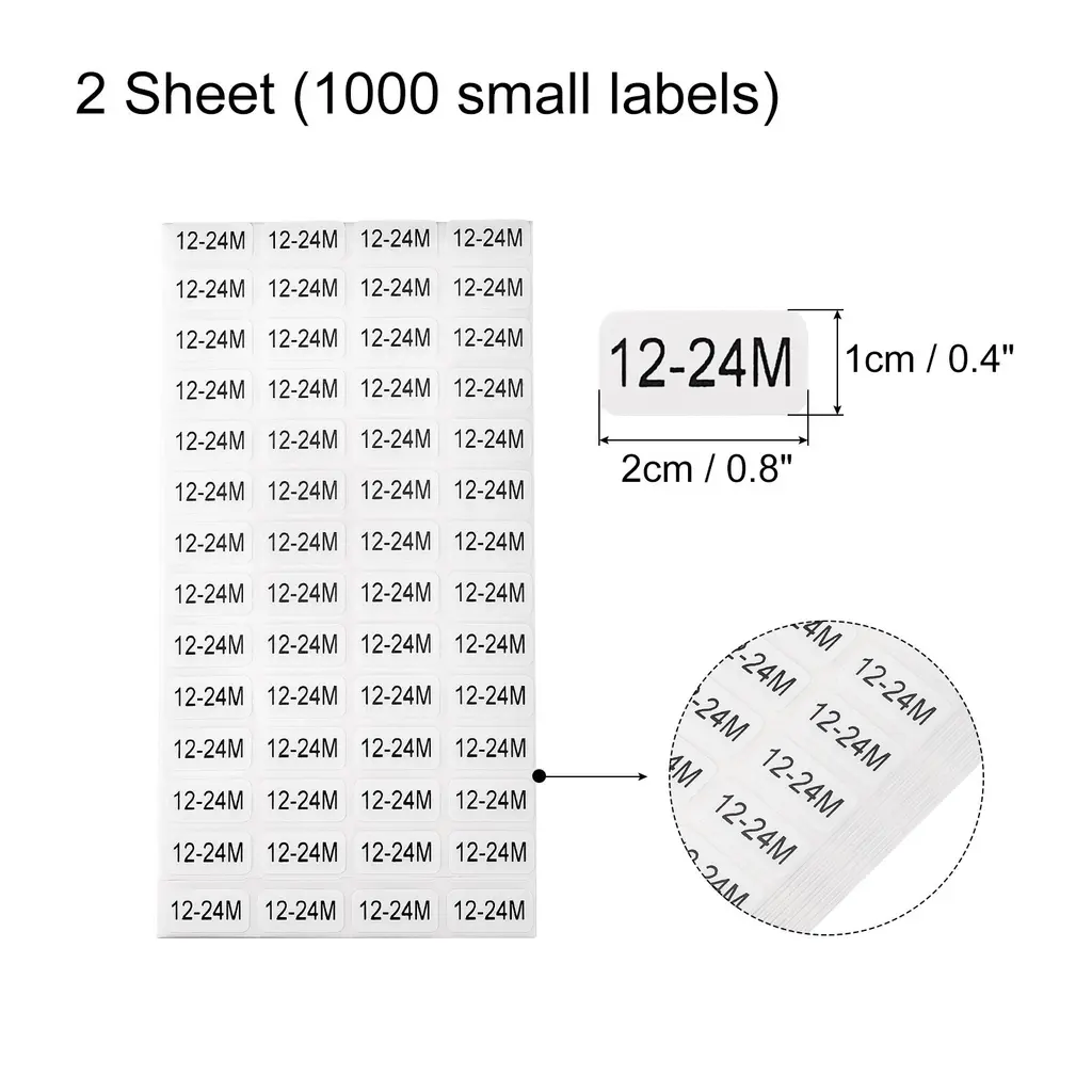 12-24 Month Clothes Size Sticker Label Clothing Size Label, 2 Sheet - Black Letter On White - Black Letter On White
