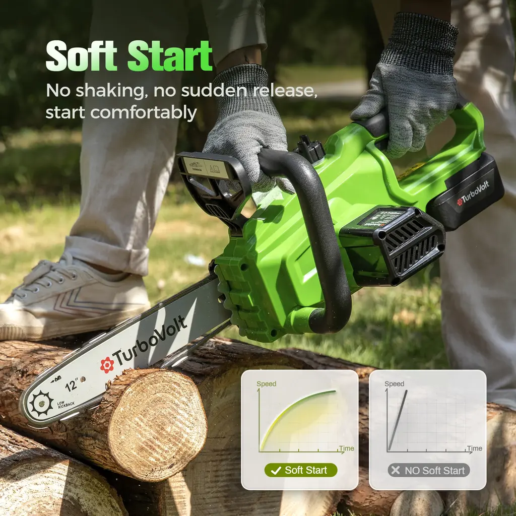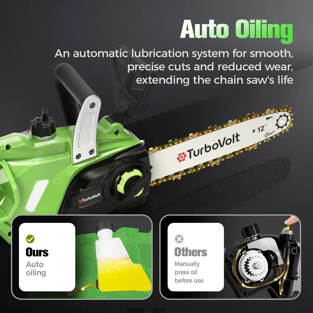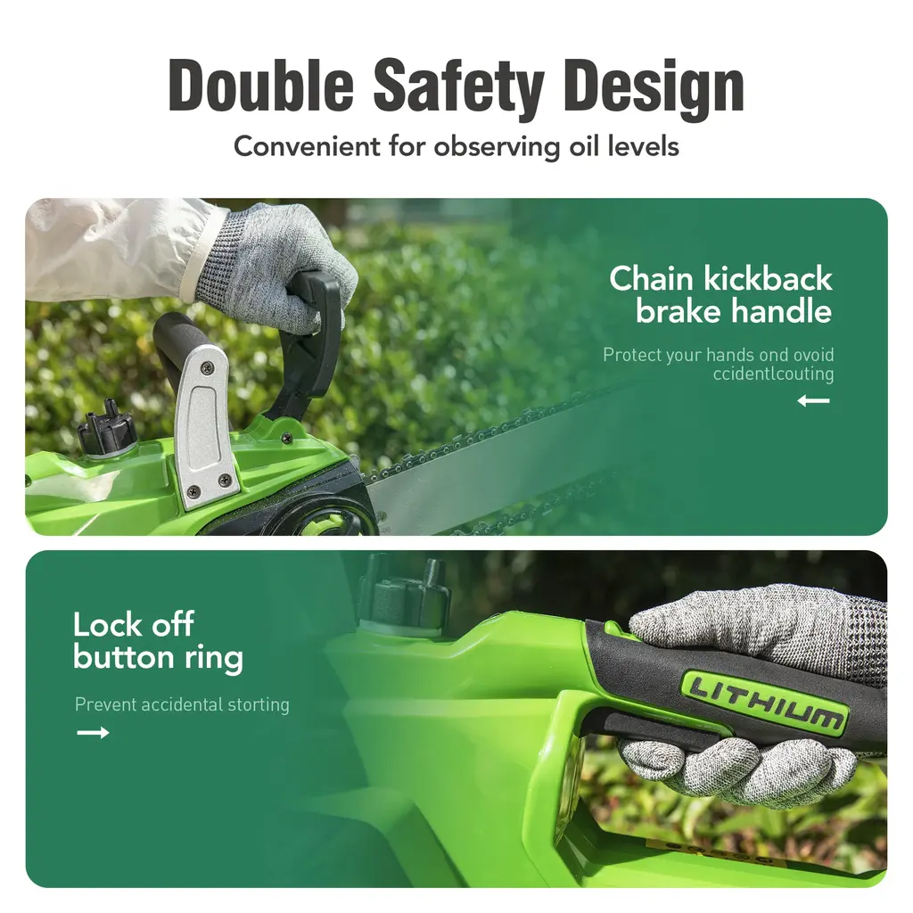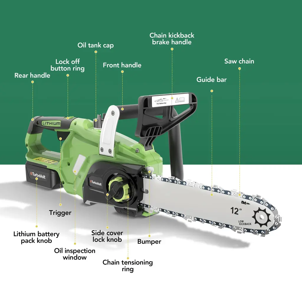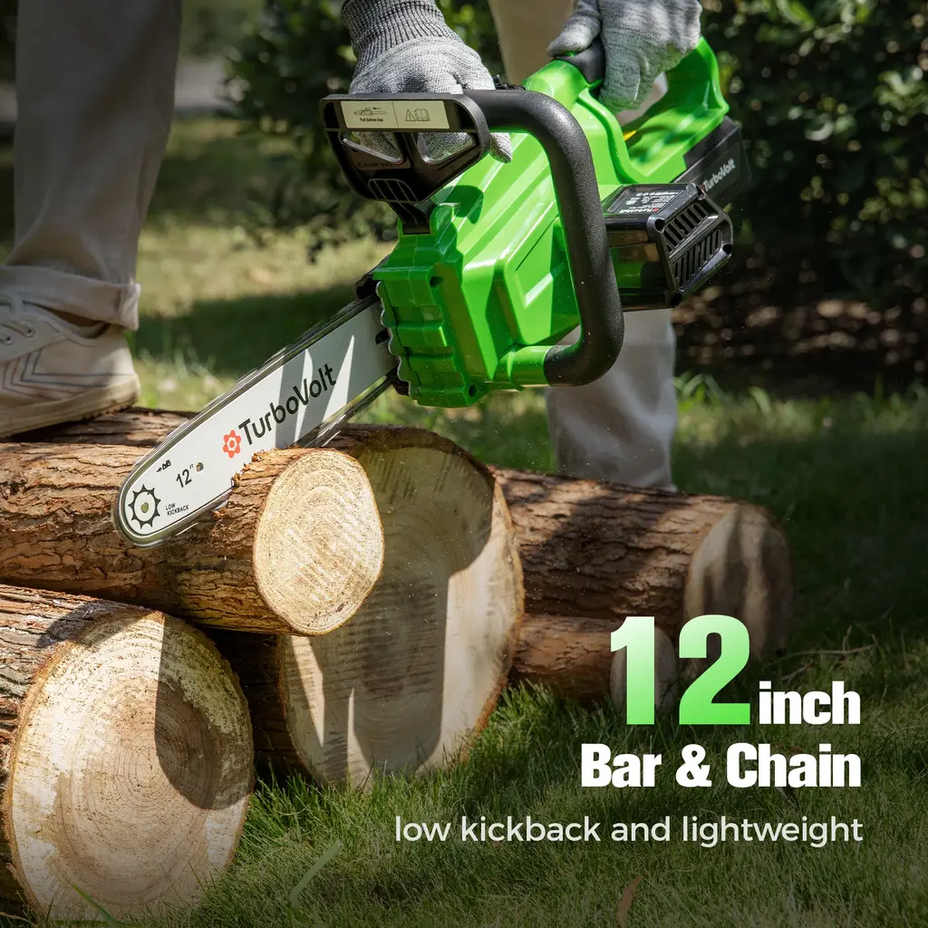 12" Cordless Brushless Chainsaw With Auto Oiling And Safety Brake For Wood Cutting