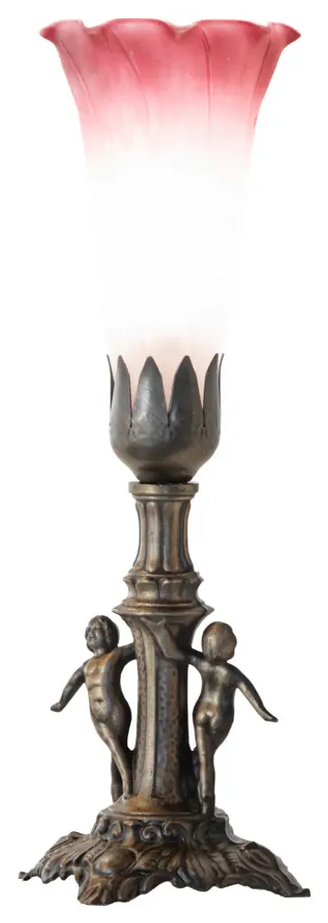 12" High Amber/purple Tiffany Pond Lily Cherub Mini Lamp