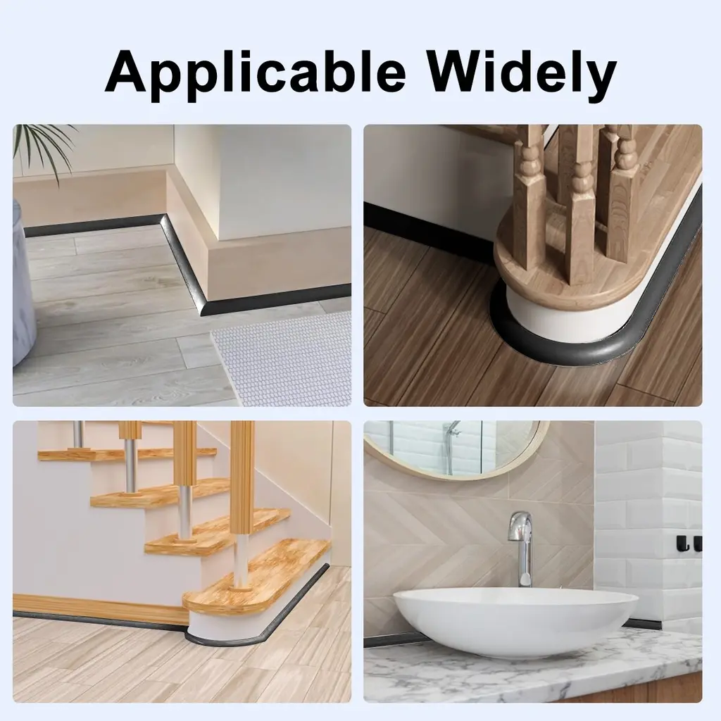 Flexible & Easy to Install - Made from bendable PVC, this baseboard moulding easily conforms to curved walls and uneven surfaces for a seamless fit. No special tools required—just peel and stick for quick installation. Self-Adhesive Backing - Features a strong adhesive layer for hassle-free application. Simply remove the protective film, align, and press firmly for a secure, long-lasting hold. Durable & Waterproof - PVC construction resists moisture, mold, and daily wear, making it ideal for kitchens, bathrooms, and high-traffic areas. Easy to clean with a damp cloth. Sleek White Finish - Provides a smooth, modern look that complements any decor. Perfect for covering gaps between walls and floors while adding a polished touch. Versatile & Trim-to-Fit - Can be cut to any length with scissors or a utility knife. Works on various surfaces, including drywall, tile, and wood—great for DIY home upgrades.