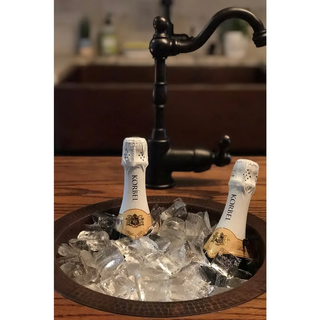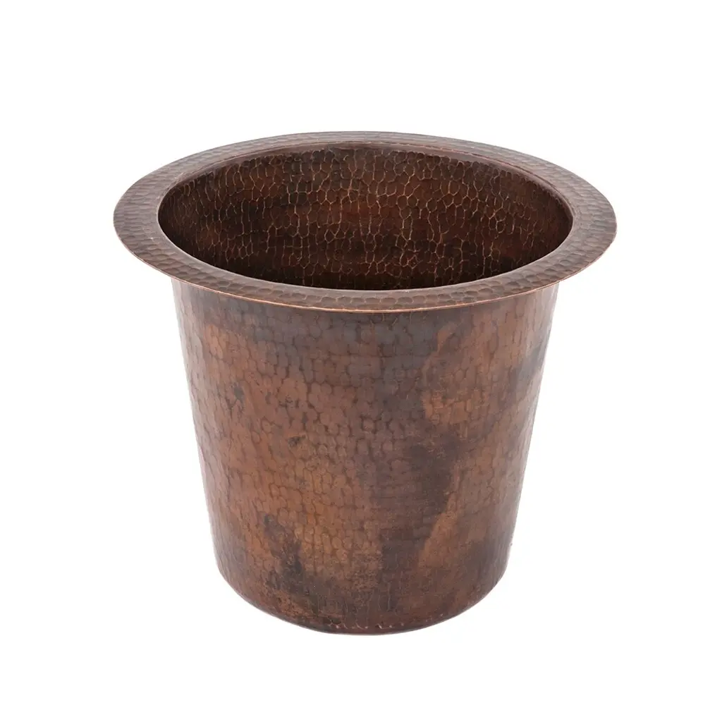 Create a focal point for your bar or prep area as refreshing as the cocktails you will be preparing with a bar or prep sink from Premier Copper Products. Designed to suit your specific needs and style, handcrafted from pure copper by our skilled artisans, and built to last a lifetime, a bar or prep sink is the ultimate way to entertain and cook in style.12" Round Hammered Copper Champagne Bar/Prep Sink Features:IMPORTANT NOTE: DUE TO THE HANDCRAFTED NATURE OF THIS PRODUCT SMALL VARIANCES IN SIZE AND COLOR MAY OCCUR.INCLUDED:Bar Sink Suggested Accessories: