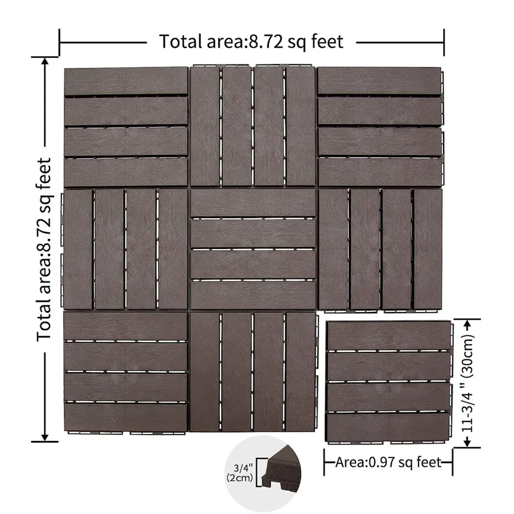 12 In. X 12 In. All Weather Outdoor Patio Square Composite Interlocking Deck Tiles For Balcony, Backyard (Pack Of 36) - Dark Brown