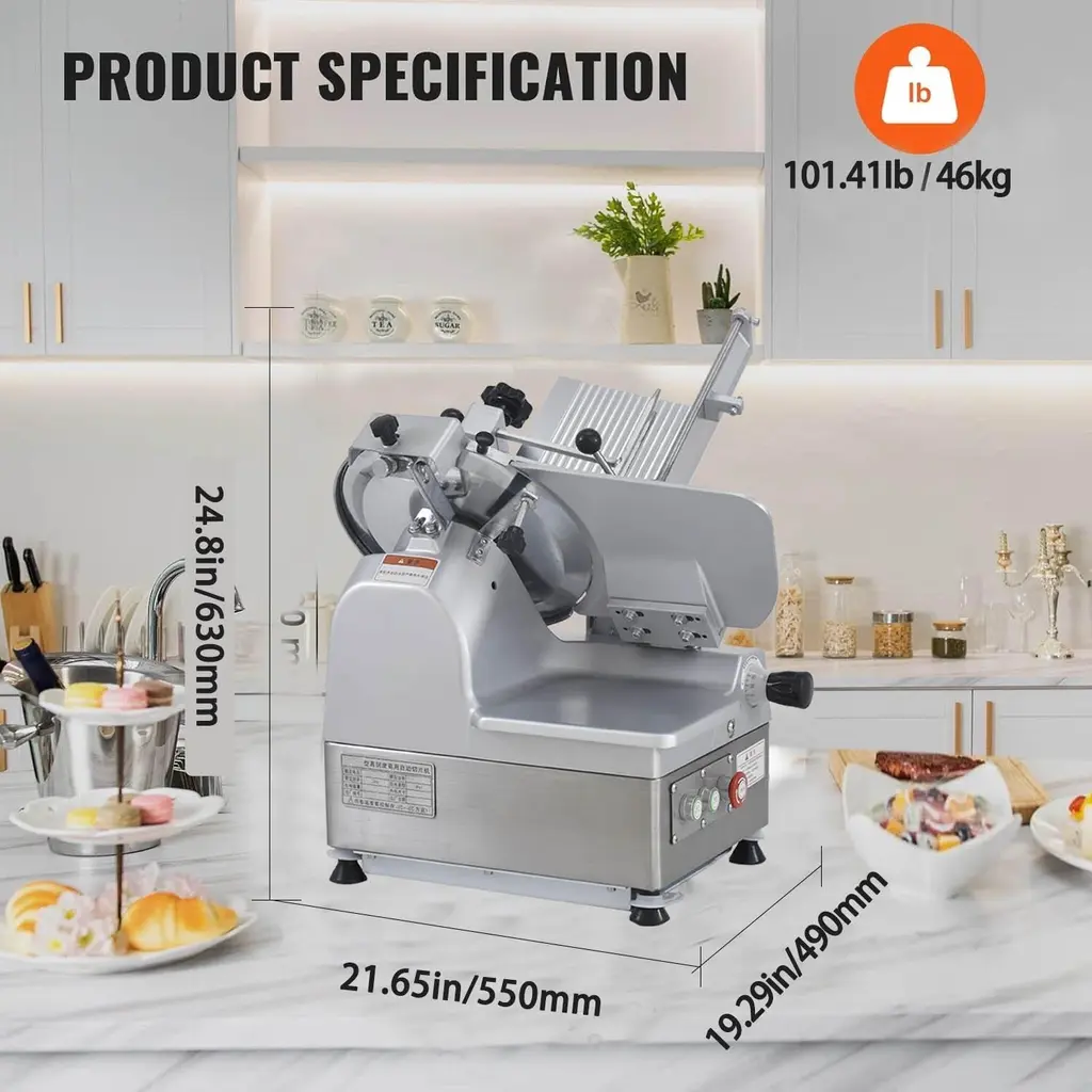 12 Inch Electric Food Slicer, Adjustable Thickness 0-0.28", 180w+370w - 12in - 12in