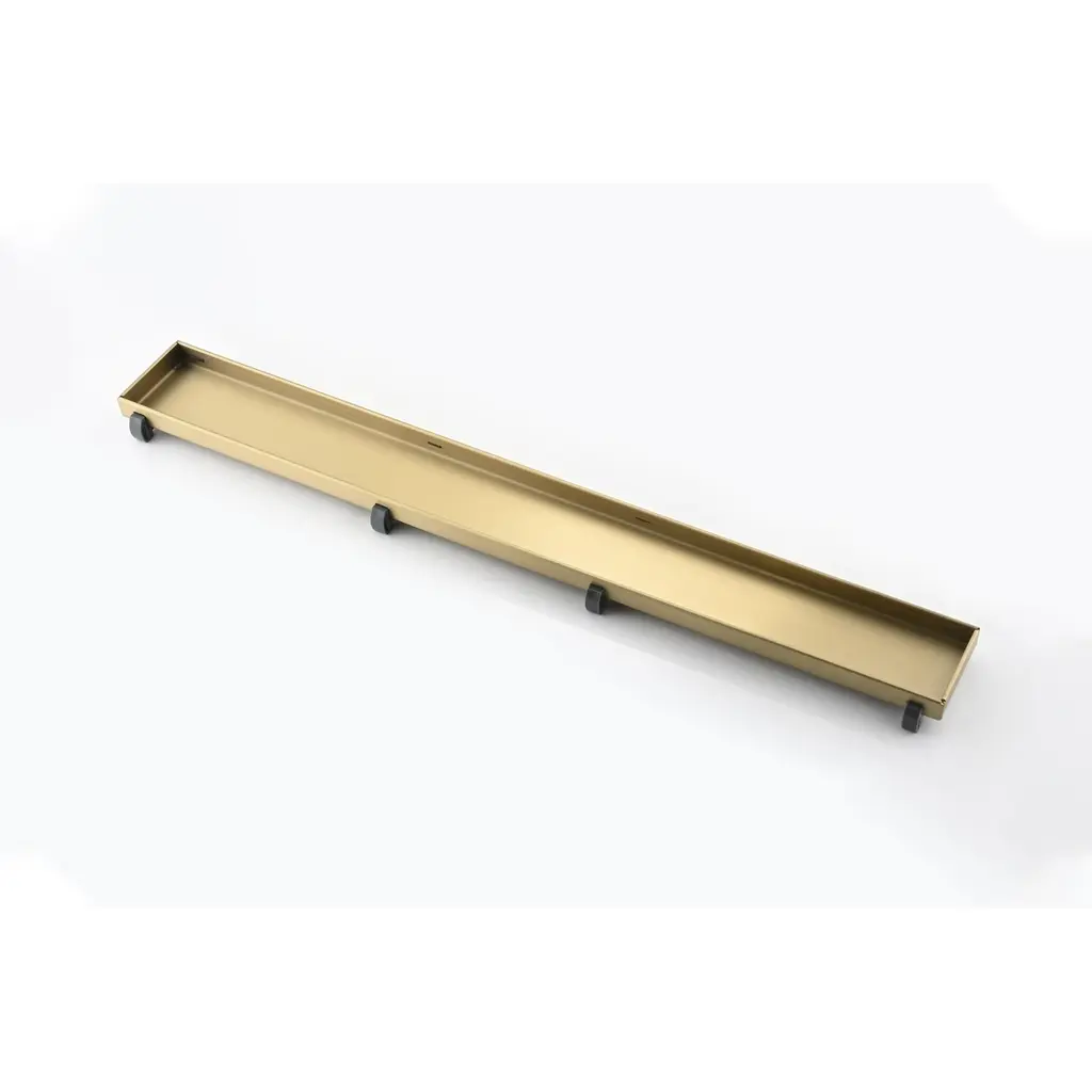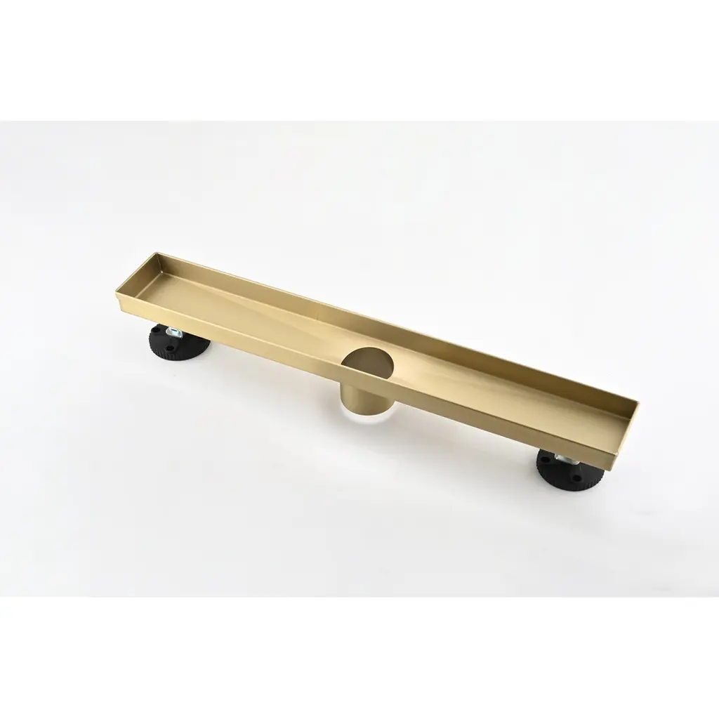 12 Inches Linear Shower Drain, Included Hair Strainer And Leveling Feet - Brushed Gold