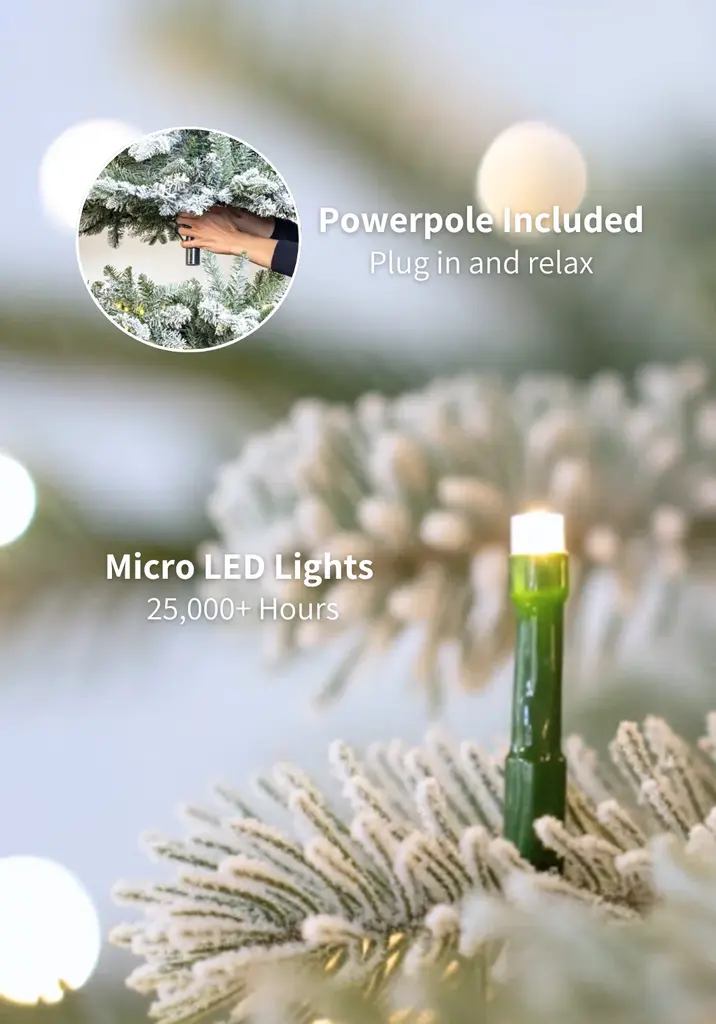 Bring the magic of a snowy morning into your home with the enchanting King Flock. Handcrafted to mimic the Subalpine Fir, native to the snow-draped Rocky Mountains. Its realistic “fresh snow” tips capture the charm of a blissful snowy retreat without ever stepping outside. Enjoy its beauty and experience why flocked Christmas trees have become a beloved holiday tradition.