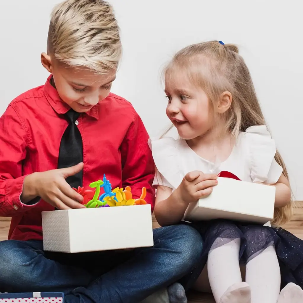 Bath toys that are easy to wash and clean. You can rinse off with water. This is an interactive toy for kids, non-hazardous, suitable for parties, bathrooms and outdoor use. Let the kids build a range of weird shapes, odd structures and fun creations! Suction cup toys as autism toys. They are also a great tool for adults to relax.Includes 12 colorful suction toys in six adorable balloon animal shapes. These engaging suction cup toys turn playtime into an enchanting adventure, capturing your child's imagination and keeping these sensory suction toys entertained for hours.