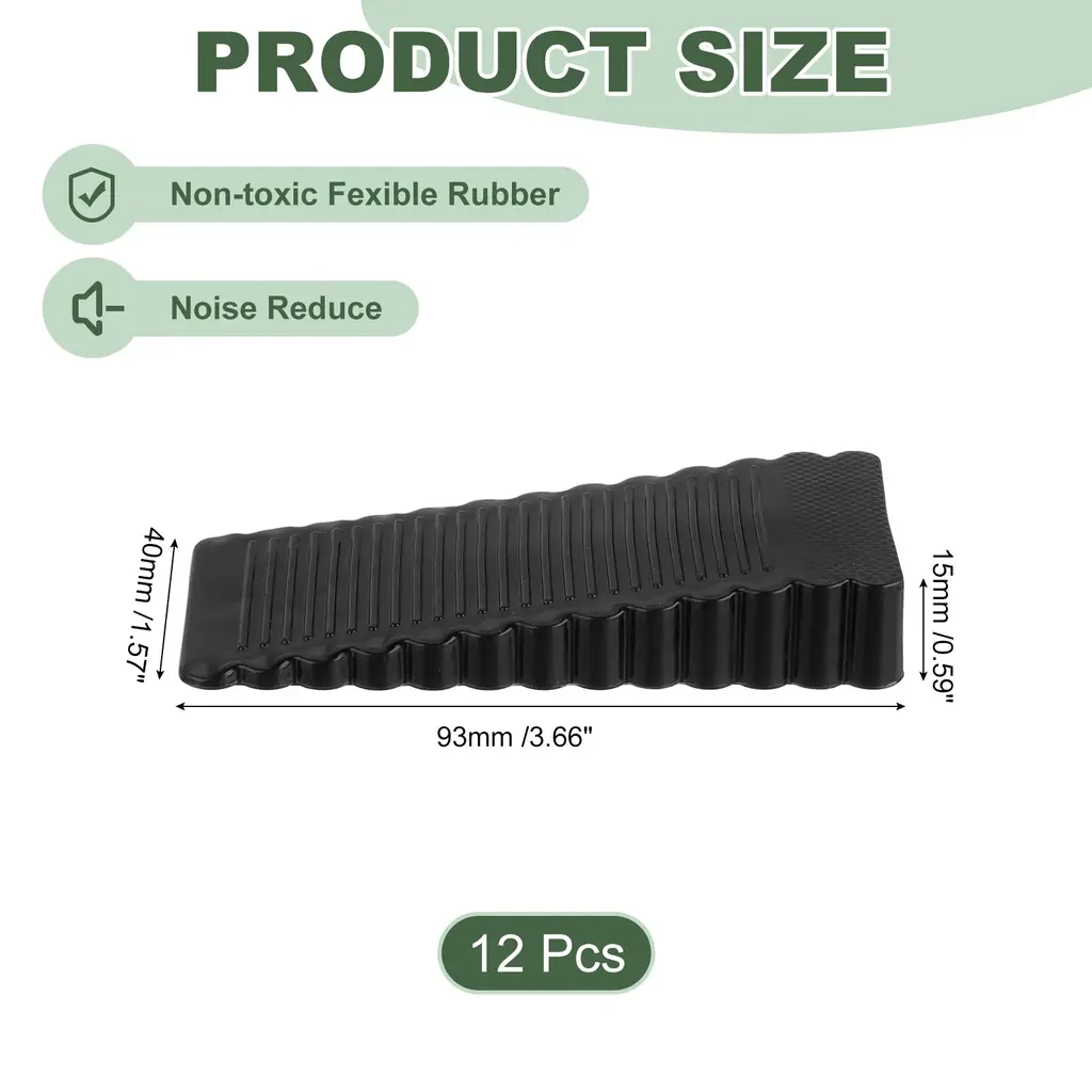 12 Pcs Abs Door Stoppers For Bottom Door Stop Wedge - Black - 1.1-Inches