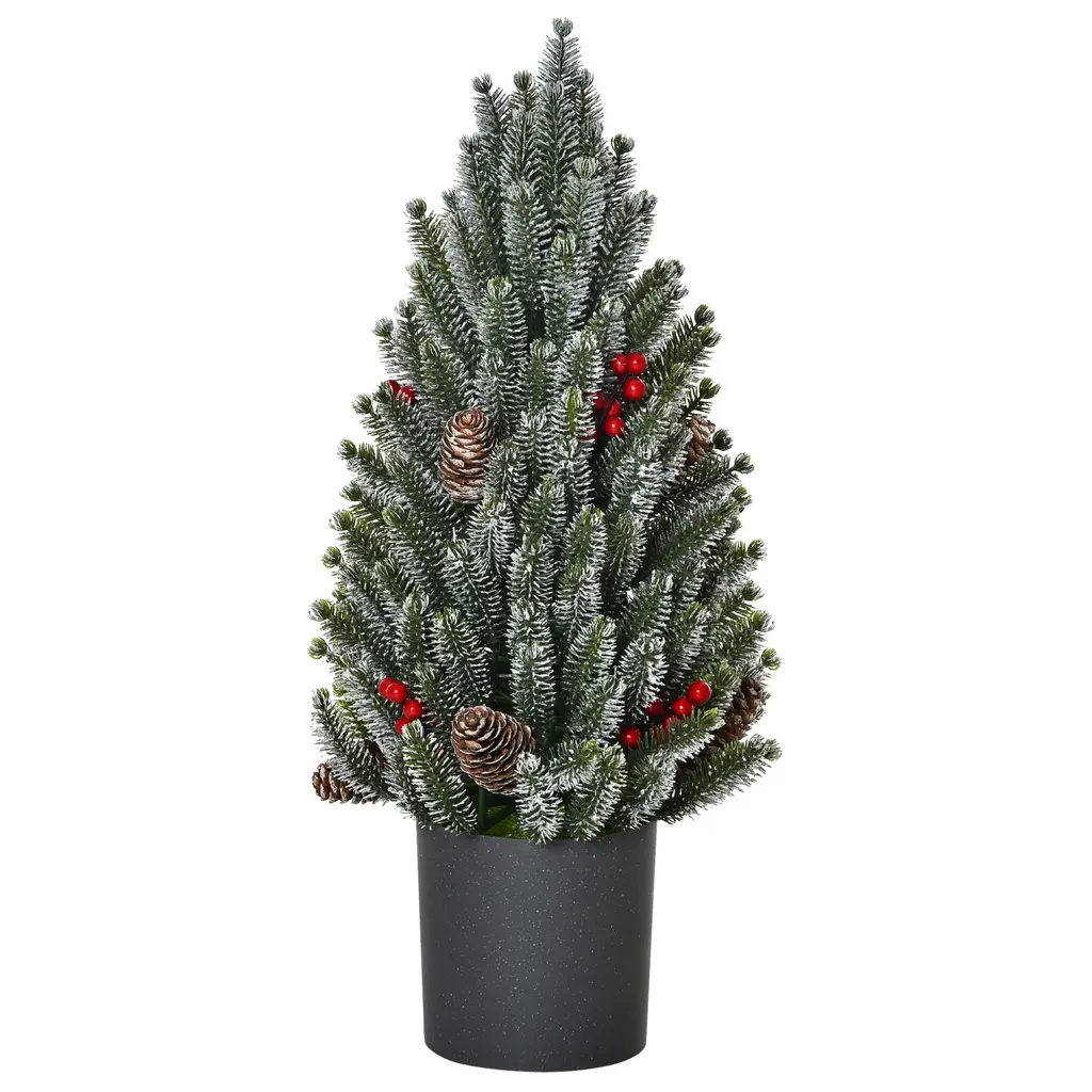 12" Potted Flocked Pine With Pine Cones Medium Artificial Christmas Tree - Unlit - 1 Foot