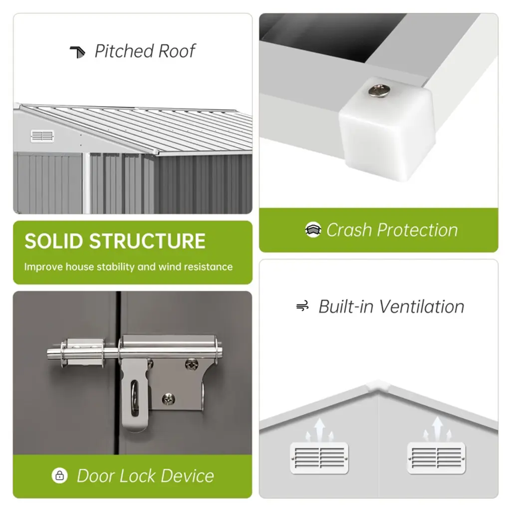 12 X 10 Ft Outdoor Storage Shed, Large Waterproof Metal Garden Shed With Updated Frame Floor