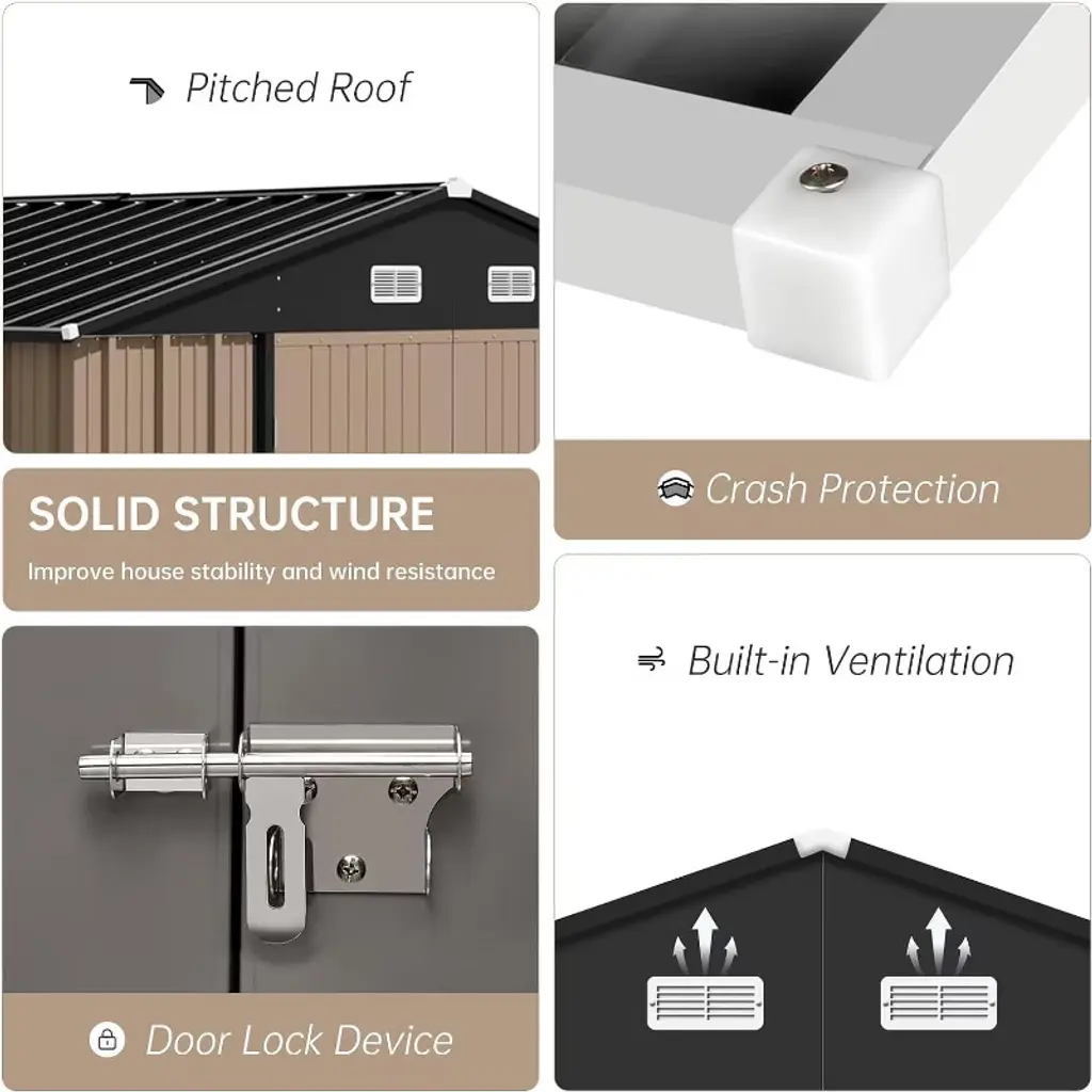 12 X 10 Ft Outdoor Storage Shed, Large Waterproof Metal Garden Shed With Updated Frame Floor