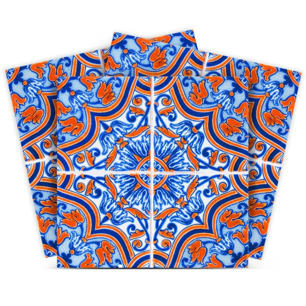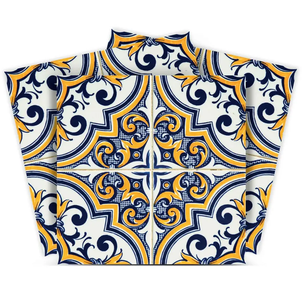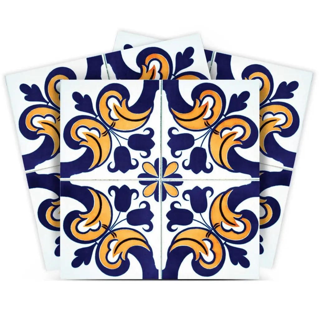 The possibilities are endless with these 12" X 12" Blue Rust Zio Removable Peel and Stick Tiles stickers. These fabulous peel and stick tiles will add lots of color, sophisticated flair, and fun design to your kitchen backsplash, fireplace mantel, stair treads, half wall, bathroom or nook. These 12" square tile stickers in multiple bright fun colors and designs are an easy, no mess solution to complete a personalized and colorful room makeover. Easy to apply on any clean dry flat surface, and easy to remove. Multi use and multi-room appeal make this design option is perfect for renters, landlords, college students and homeowners alike. Peel and stick tile decals make it easy to turn your space into a home. Removable without damage to surfaces. One kit contains 24 stickers. Kit includes multiple styles that can be arranged in any patterning you choose.Easily upgrade your bathroom with blue coastal style.Features glossy square mosaic tiles with an Arabesque pattern.Glossy surface finish for a sleek appearance.Impervious water absorption suitable for wet areas.Made of impervious vinyl for long-lasting use.Mosaic tile design for a unique bathroom look.