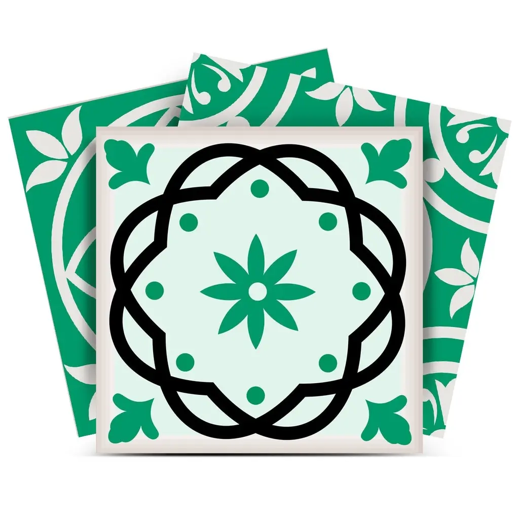 The possibilities are endless with these 12" X 12" Green and White Mosaic Peel and Stick Removable Tiles stickers. These fabulous peel and stick tiles will add lots of color, sophisticated flair, and fun design to your kitchen backsplash, fireplace mantel, stair treads, half wall, bathroom or nook. These 12" square tile stickers in multiple bright fun colors and designs are an easy, no mess solution to complete a personalized and colorful room makeover. Easy to apply on any clean dry flat surface, and easy to remove. Multi use and multi-room appeal make this design option is perfect for renters, landlords, college students and homeowners alike. Peel and stick tile decals make it easy to turn your space into a home. Removable without damage to surfaces. One kit contains 24 stickers. Kit includes multiple styles that can be arranged in any patterning you choose.arabesque mosaic pattern.coastal style in green and white.glossy surface finish.impervious water absorption.mosaic tile with square shape.perfect for bathroom use.
