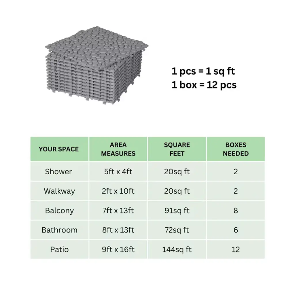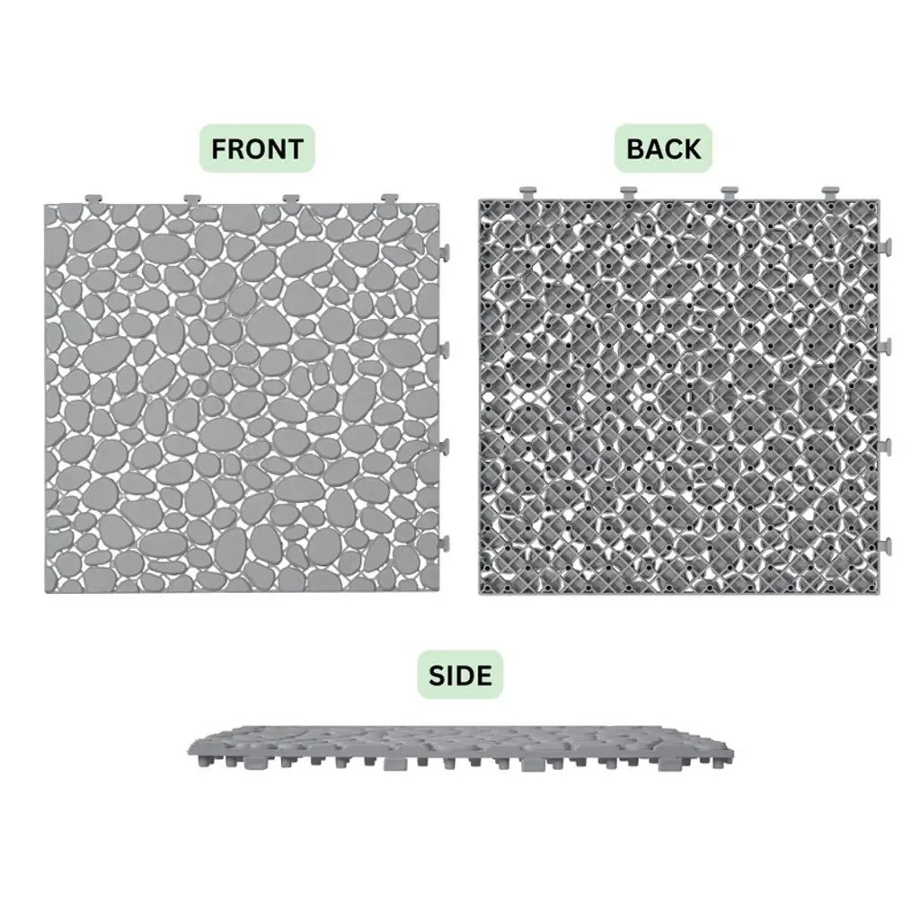 12 X 12 Inch Black Interlocking Deck Tiles With Pebble Stone Pattern, Waterproof Plastic Outdoor Decking, 12-pack