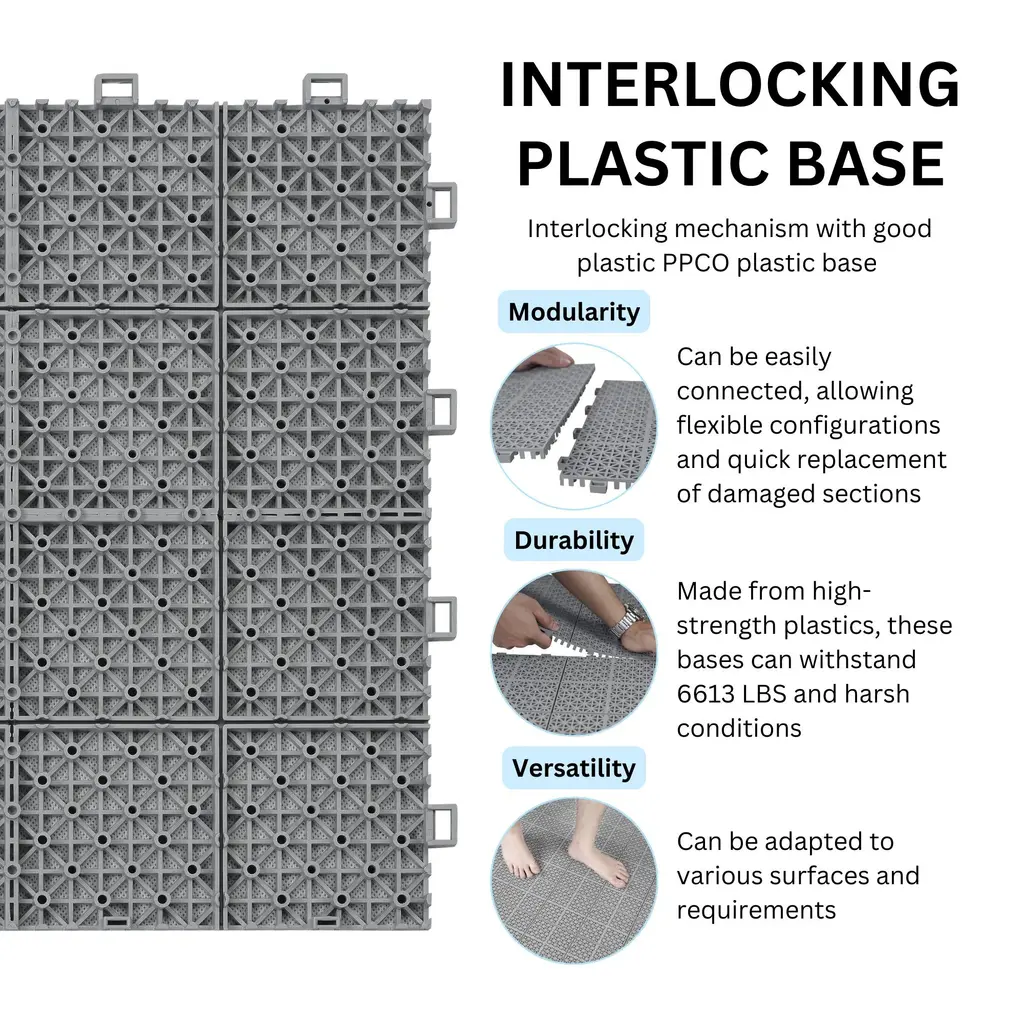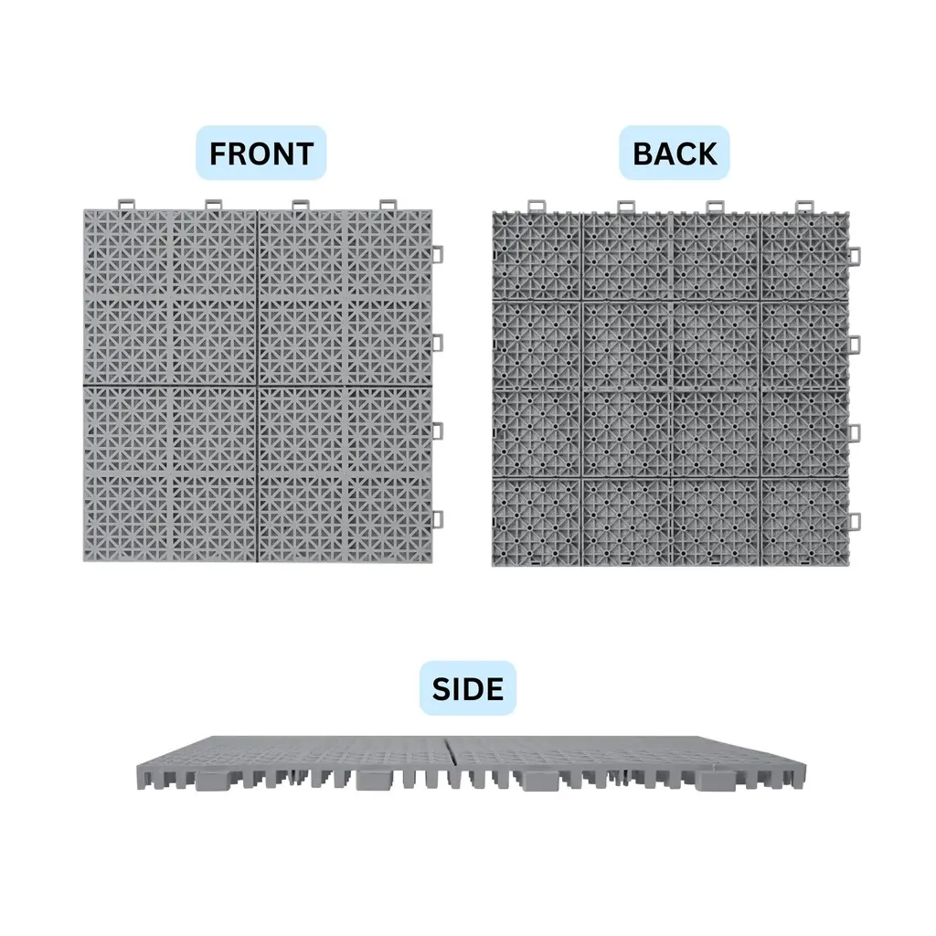 12 X 12 Inch Interlocking Deck Tiles Plastic Waterproof For Bathroom Shower Balcony Porch Pebble Stone Pattern(12 Pack) - Rosette Pattern - Grey
