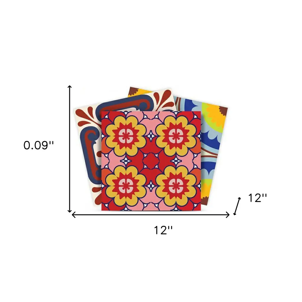 12" X 12" Pink, Red And Yellow Auguri Geo Peel And Stick Removable Tiles - Yellow/red