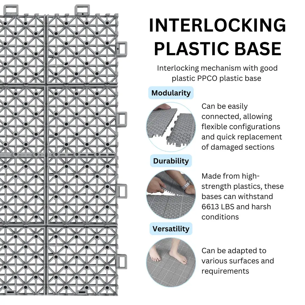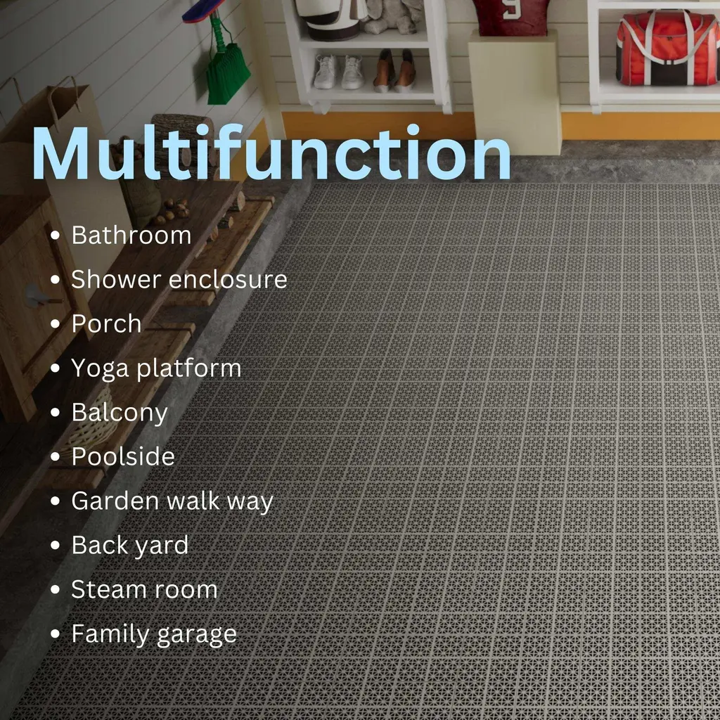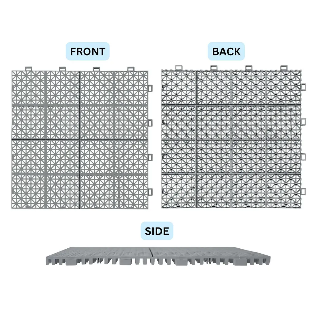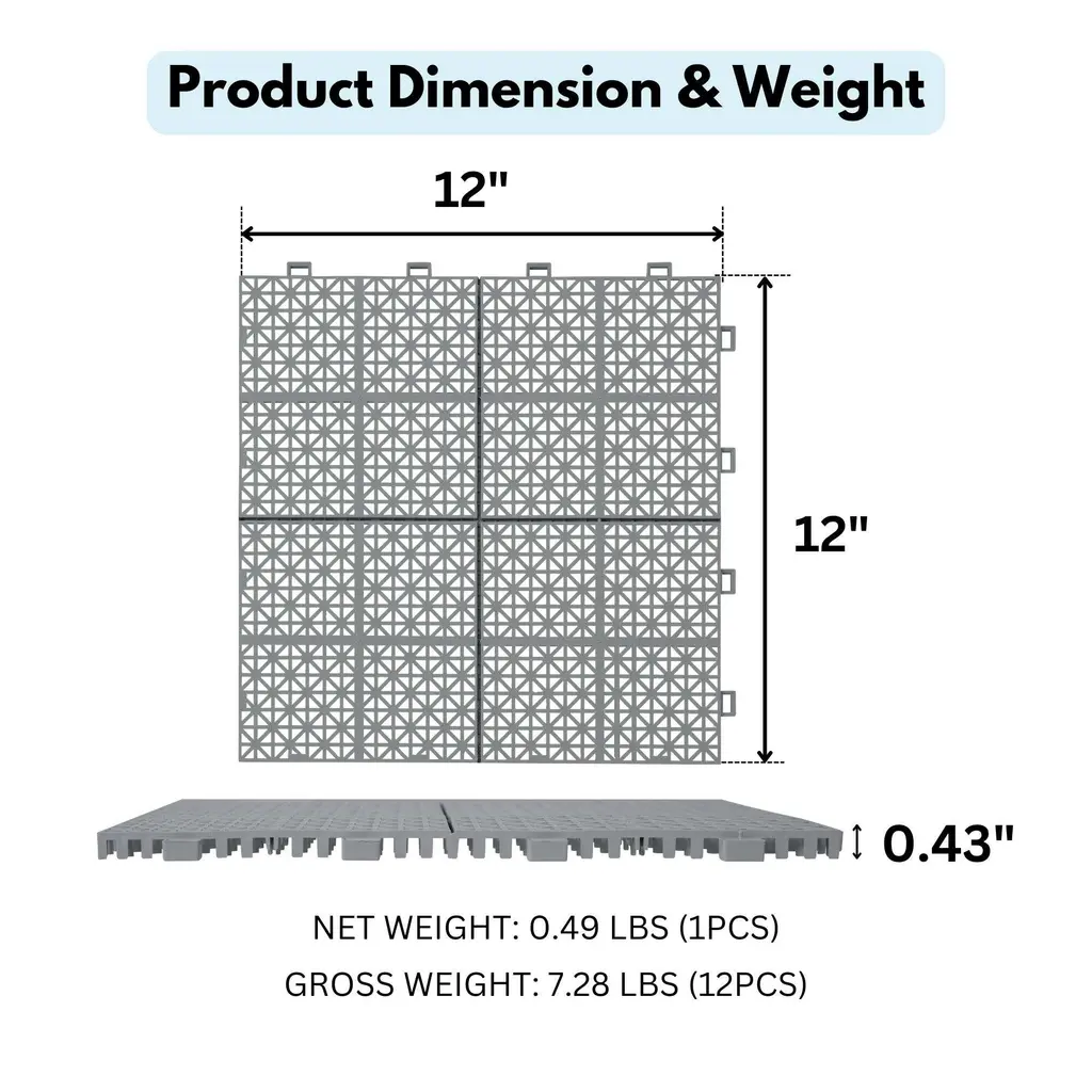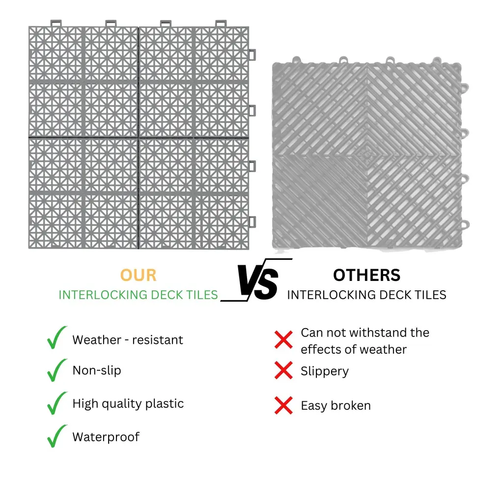 12 X 12 Rosette Pattern Interlocking Deck Tiles 12 Pack Plastic Waterproof Outdoor Deck Tiles All Weather Anti Slip Floor Tiles - Grey