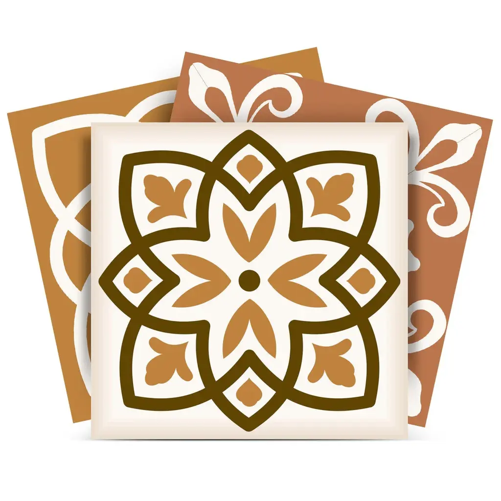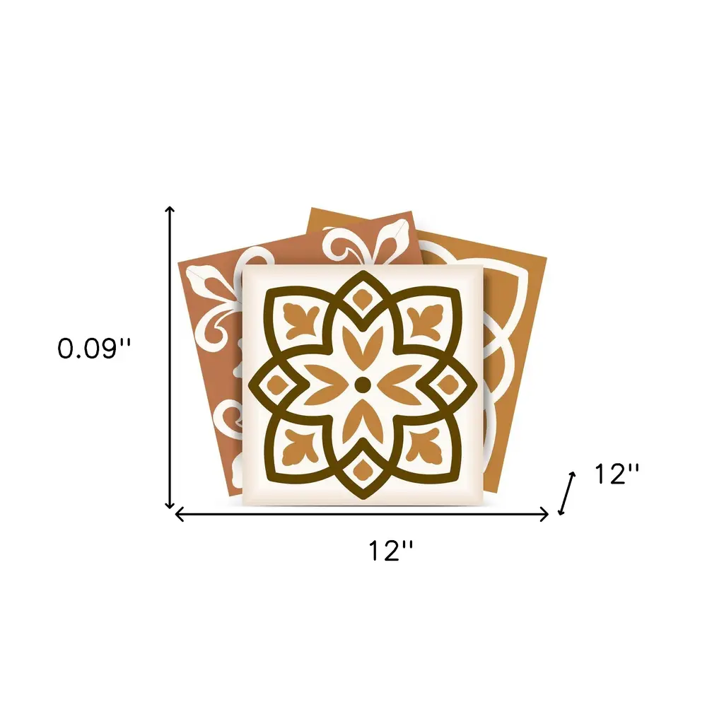 The possibilities are endless with these 12" X 12" Snickerdoodle Mosaic Pop Peel and Stick Removable Tiles stickers. These fabulous peel and stick tiles will add lots of color, sophisticated flair, and fun design to your kitchen backsplash, fireplace mantel, stair treads, half wall, bathroom or nook. These 12" square tile stickers in multiple bright fun colors and designs are an easy, no mess solution to complete a personalized and colorful room makeover. Easy to apply on any clean dry flat surface, and easy to remove. Multi use and multi-room appeal make this design option is perfect for renters, landlords, college students and homeowners alike. Peel and stick tile decals make it easy to turn your space into a home. Removable without damage to surfaces. One kit contains 24 stickers. Kit includes multiple styles that can be arranged in any patterning you choose.Coastal style with brown and white color palette.Elegant Arabesque mosaic pattern.Features mosaic tile design.Glossy surface finish.Ideal for bathroom.Square-shaped tiles.