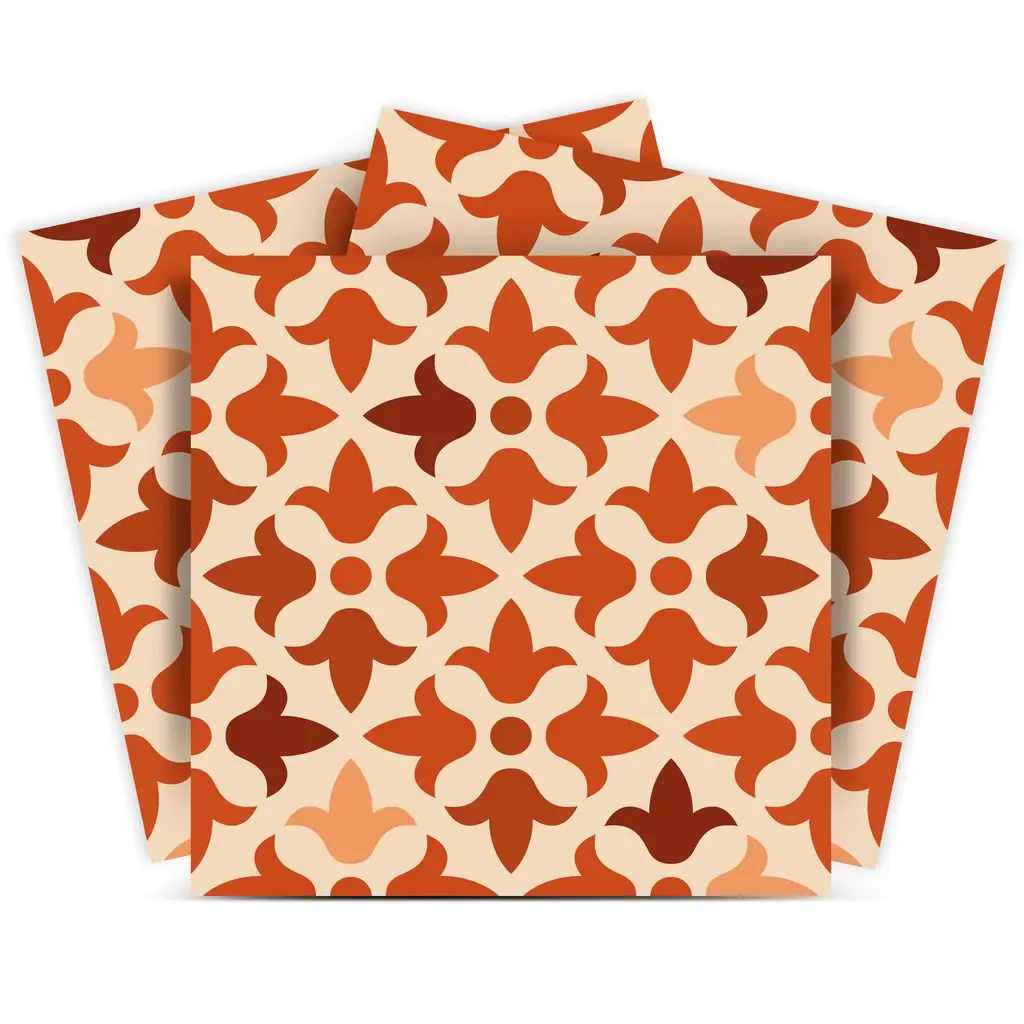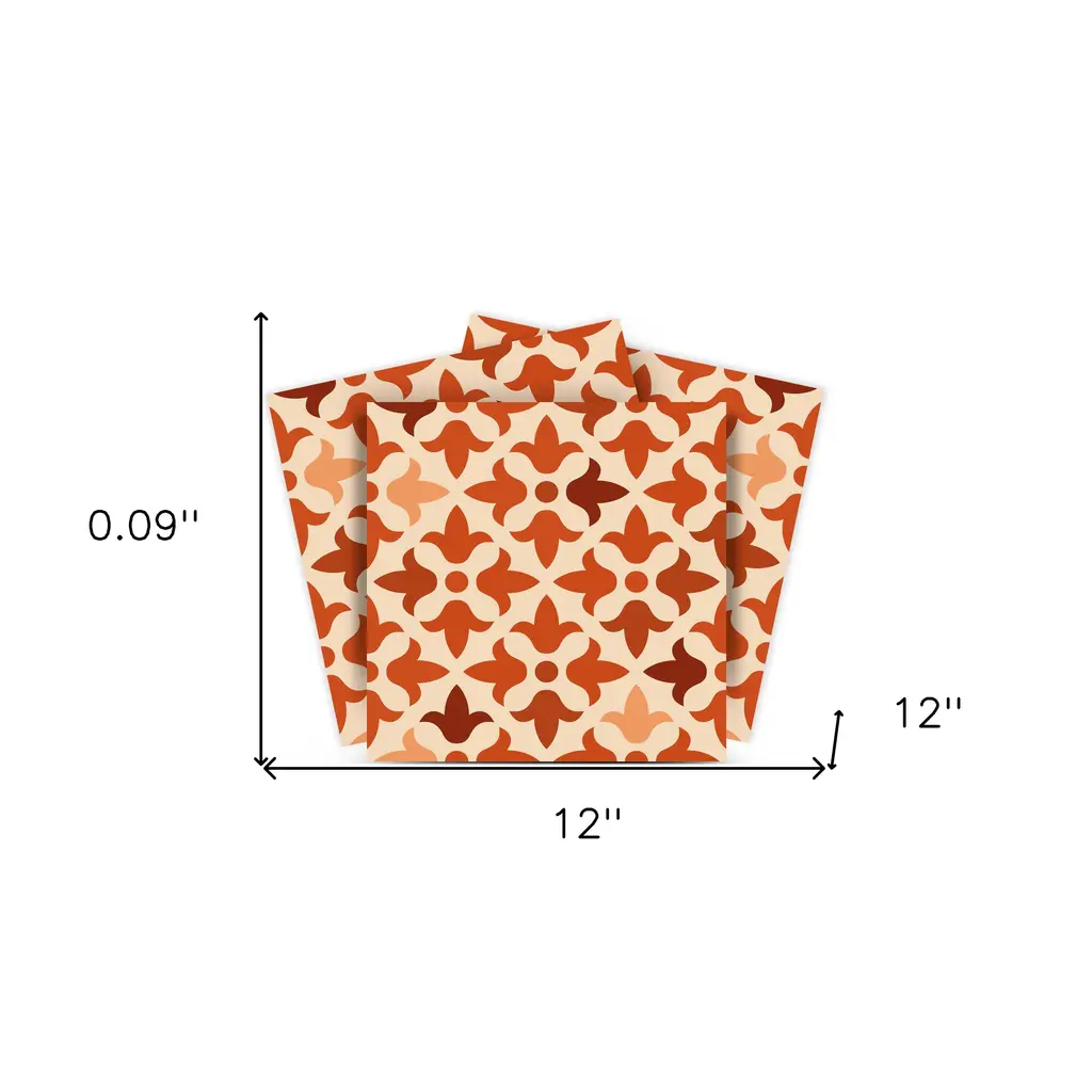 The possibilities are endless with these 12" X 12" Terra Cotta Tango Peel and Stick Tiles stickers. These fabulous peel and stick tiles will add lots of color, sophisticated flair, and fun design to your kitchen backsplash, fireplace mantel, stair treads, half wall, bathroom or nook. These 12" square tile stickers in multiple bright fun colors and designs are an easy, no mess solution to complete a personalized and colorful room makeover. Easy to apply on any clean dry flat surface, and easy to remove. Multi use and multi-room appeal make this design option is perfect for renters, landlords, college students and homeowners alike. Peel and stick tile decals make it easy to turn your space into a home. Removable without damage to surfaces. One kit contains 24 stickers. Kit includes multiple styles that can be arranged in any patterning you choose.Easy to Install Peel and stick mosaic tiles.Glossy Terra Cotta Vinyl Material.Ideal for Transitional style decor.Impervious to Water Absorption.Square tiles with Arabesque mosaic pattern.Suitable for Bathroom.