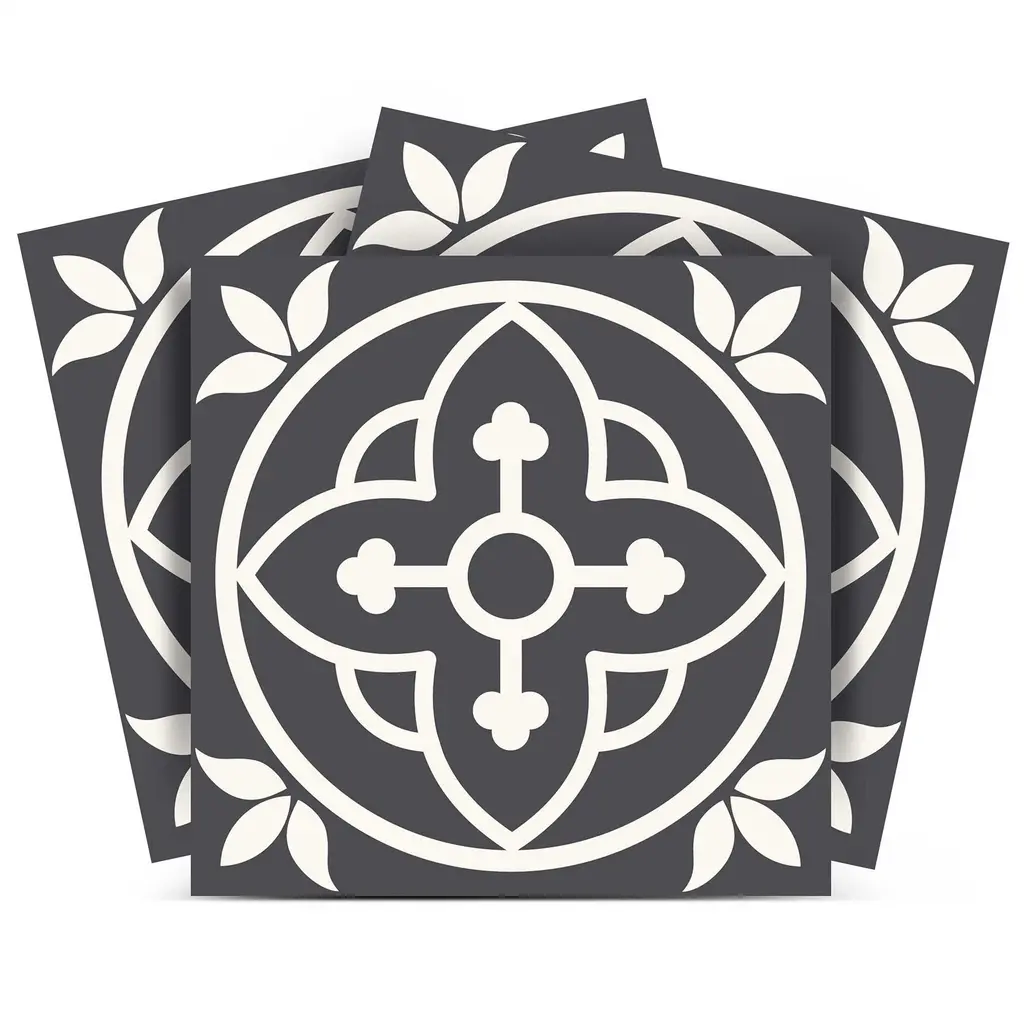 The possibilities are endless with these 12" x 12" Tulipa Gray and White Peel and Stick Removable Tiles stickers. These fabulous peel and stick tiles will add lots of color, sophisticated flair, and fun design to your kitchen backsplash, fireplace mantel, stair treads, half wall, bathroom or nook. These 12" square tile stickers in multiple bright fun colors and designs are an easy, no mess solution to complete a personalized and colorful room makeover. Easy to apply on any clean dry flat surface, and easy to remove. Multi use and multi-room appeal make this design option is perfect for renters, landlords, college students and homeowners alike. Peel and stick tile decals make it easy to turn your space into a home. Removable without damage to surfaces. One kit contains 24 stickers. Kit includes multiple styles that can be arranged in any patterning you choose.black and white color, transitional style.glossy surface.impervious to water.mosaic tile design.perfect for bathroom.vinyl material.