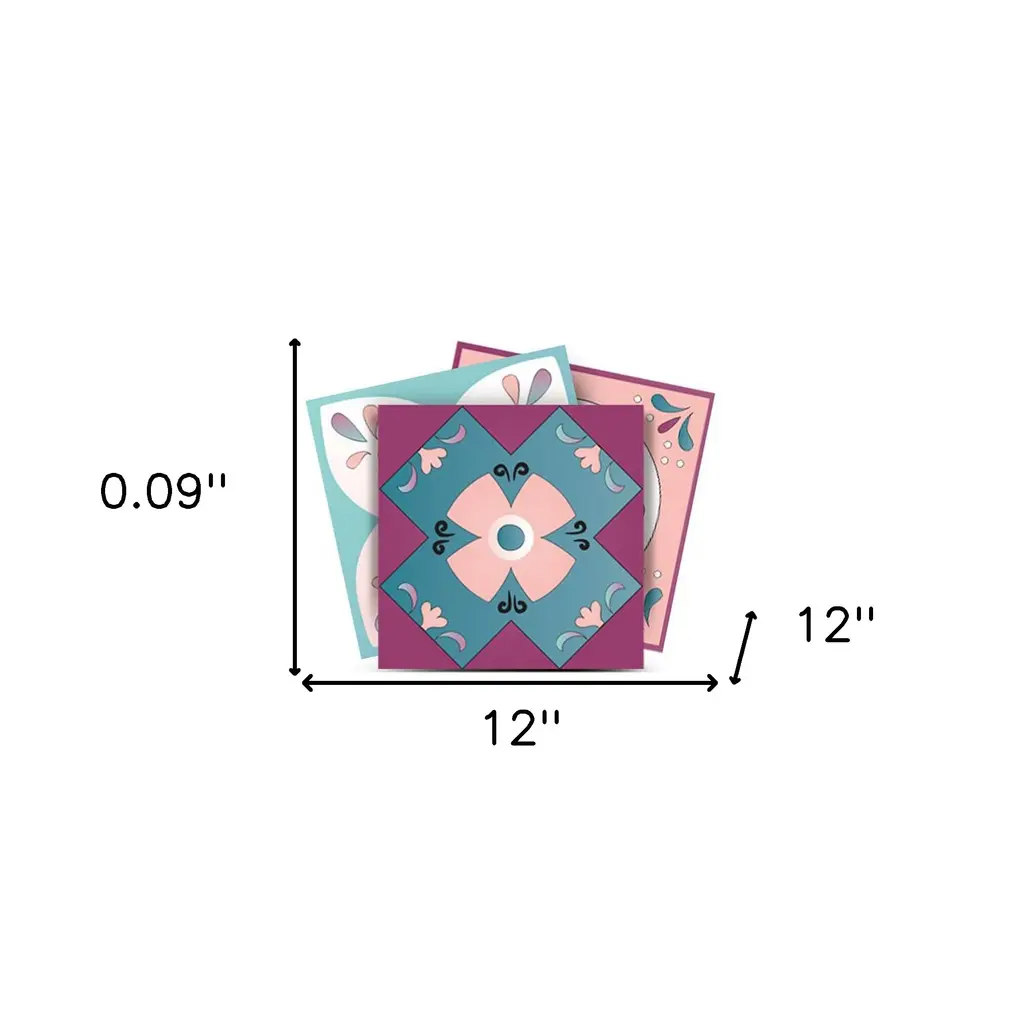 The possibilities are endless with these 12" X 12" Vintage Turq Blush and Mauve Peel and Stick Removable Tiles stickers. These fabulous peel and stick tiles will add lots of color, sophisticated flair, and fun design to your kitchen backsplash, fireplace mantel, stair treads, half wall, bathroom or nook. These 12" square tile stickers in multiple bright fun colors and designs are an easy, no mess solution to complete a personalized and colorful room makeover. Easy to apply on any clean dry flat surface, and easy to remove. Multi use and multi-room appeal make this design option is perfect for renters, landlords, college students and homeowners alike. Peel and stick tile decals make it easy to turn your space into a home. Removable without damage to surfaces. One kit contains 24 stickers. Kit includes multiple styles that can be arranged in any patterning you choose.Coastal style with purple and white color scheme.Easy to install peel and stick mosaic tile.Glossy surface adds a touch of elegance.Impervious to water for long-lasting quality.Made of high-quality vinyl material.Square-shaped tiles in stylish Arabesque mosaic pattern.