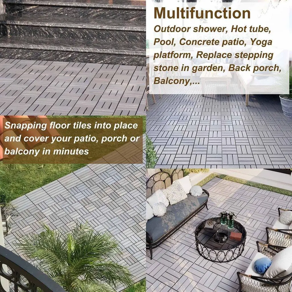 These Acacia Wood Interlocking Deck Tiles are a perfect solution for upgrading your outdoor spaces. Each tile measures 12" x 12" and is crafted from durable Acacia hardwood, finished with water-based oil to make them waterproof, mildew, and mold-resistant. Their checker pattern design adds a stylish touch to patios, balconies, or poolside areas. These tiles are easy to install with a rubber hammer and can be cut to fit corners or edges. The interlocking design ensures stability, while the plastic base allows proper drainage, making them ideal for rainy seasons.Features:Specifications: