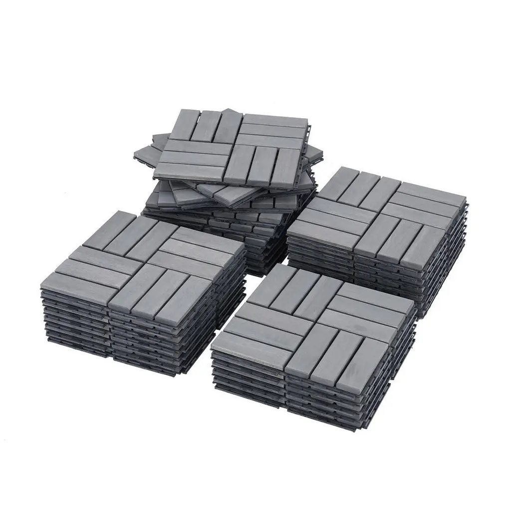 12" X 12"acacia Wood Interlocking Deck Tiles Checker Pattern - 10 Pcs - Gray