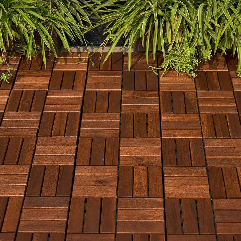 12" X 12"acacia Wood Interlocking Deck Tiles Checker Pattern - 30 Pcs - Brown