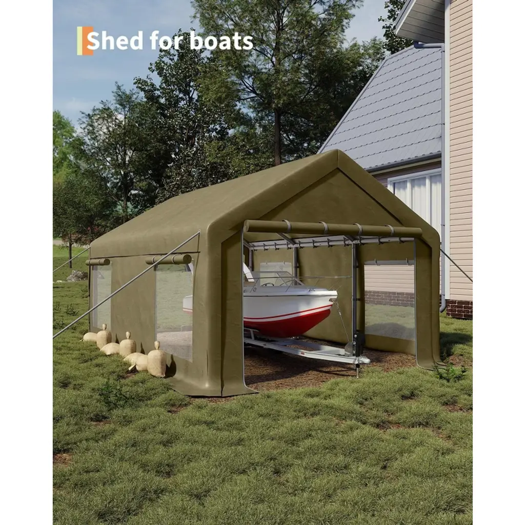 12 X 20ft Heavy-duty Carport Canopy With Roll-up Windows & Doorsthickened Wind Ropes, Ground Nails