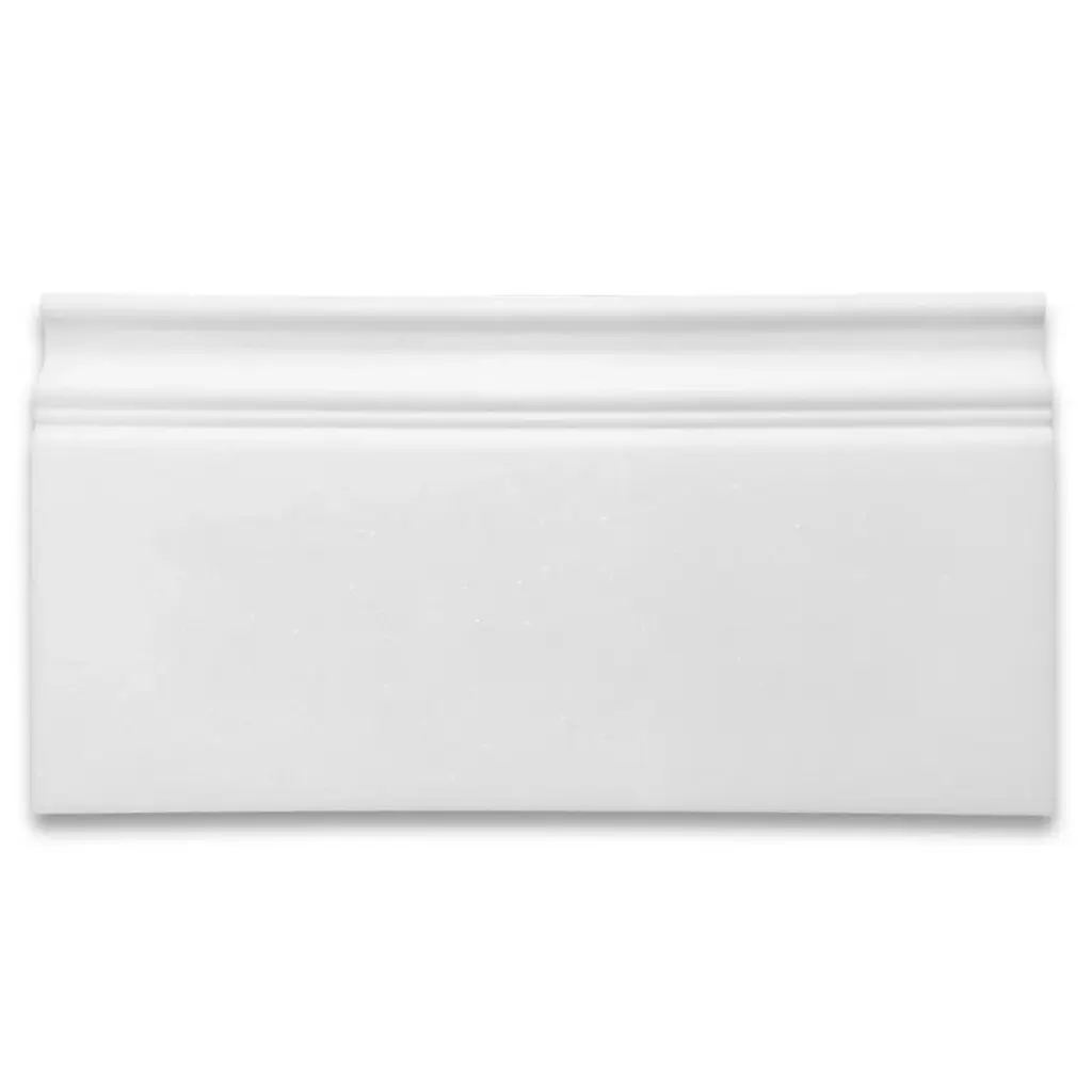 Premium Grade White Thassos Marble Skirting Baseboard Trim Molding Tiles. Greek Thassos White Pure White Crystal Marble Honed 6x12 Skirting Baseboard Trim Molding Wall & Floor Tiles are perfect for any interior projects. The 6x12 Thassos White Marble Skirting Baseboard Trim Molding tiles can be used for a kitchen backsplash, bathroom flooring, shower surround, dining room, entryway, spa. Our timeless Matte White Thassos Marble Skirting Baseboard Trim Molding tiles with a large selection of coordinating products is available and include arabesque, fish scale, penny round, herringbone, basketweave mosaics, 12x12, 18x18, 12x39, subway tiles, moldings, borders, and more.
