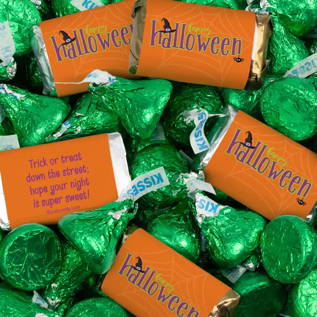 Celebrate the fall season with candy! Add your personal touch to your fall party favors, goody bags or candy buffet with this 'Hello Fall' themed candy mix. This exclusive mix includes an assortment of Hershey’s Miniatures & Gold Foiled Milk Chocolate Almond Hershey’s Kisses. Miniatures flavors include milk chocolate, dark chocolate, krackel & mr. goodbar. Candy orders ship with cold pack packaging as needed.