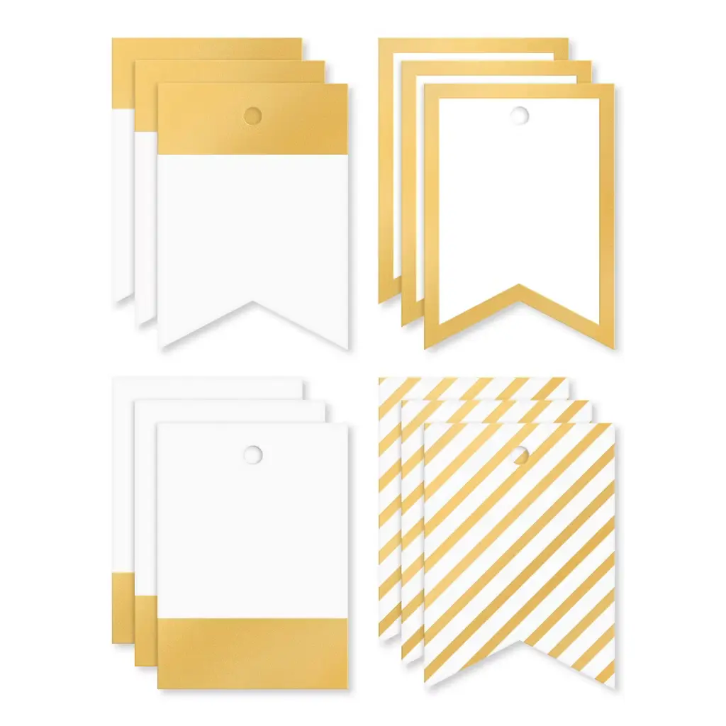 Elevate your gift presentation with these versatile gold foil tags. Each set contains 12 elegant tags adorned with gold foil on premium white cardstock. Whether you're attaching them to wedding favors, birthday gifts, or just organizing your items with flair, these tags adapt beautifully to any theme or purpose. The sleek and modern designs ensure that your gifts stand out. Standard postage required.