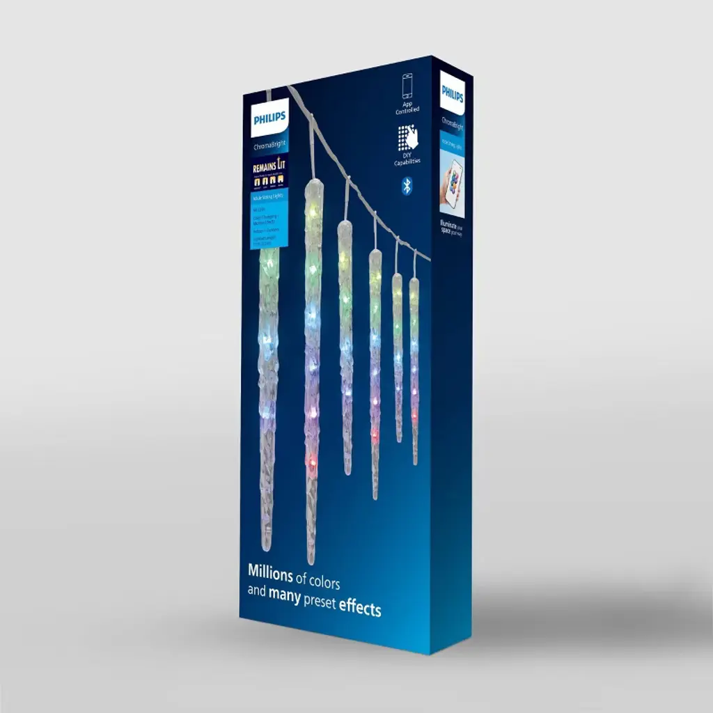12ct Philips Chromabright Led App Controlled Molded Icicle With Rgb Led's, Green Wire, Indoor/outdoor