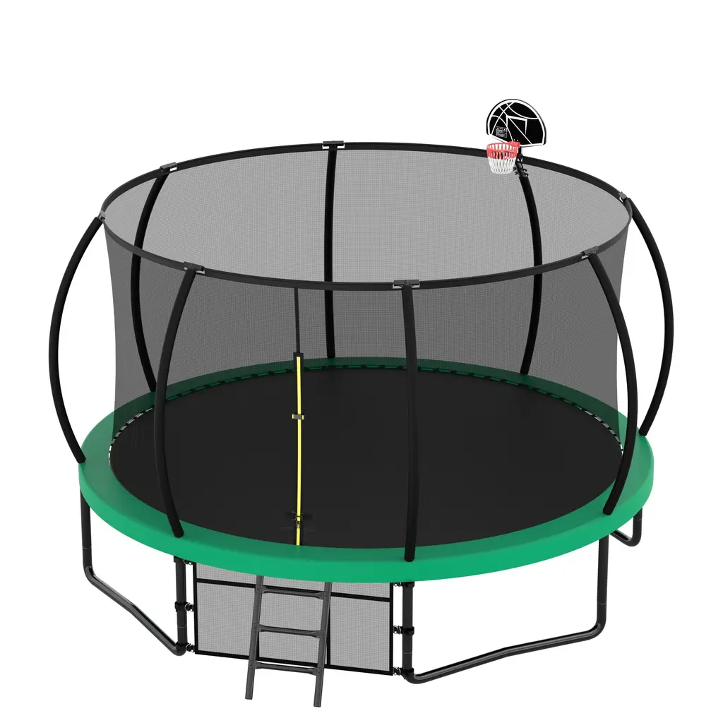 12ft Recreational Kids Trampoline With Safety Enclosure Net & Ladder, Outdoor Recreational Trampolines - Green
