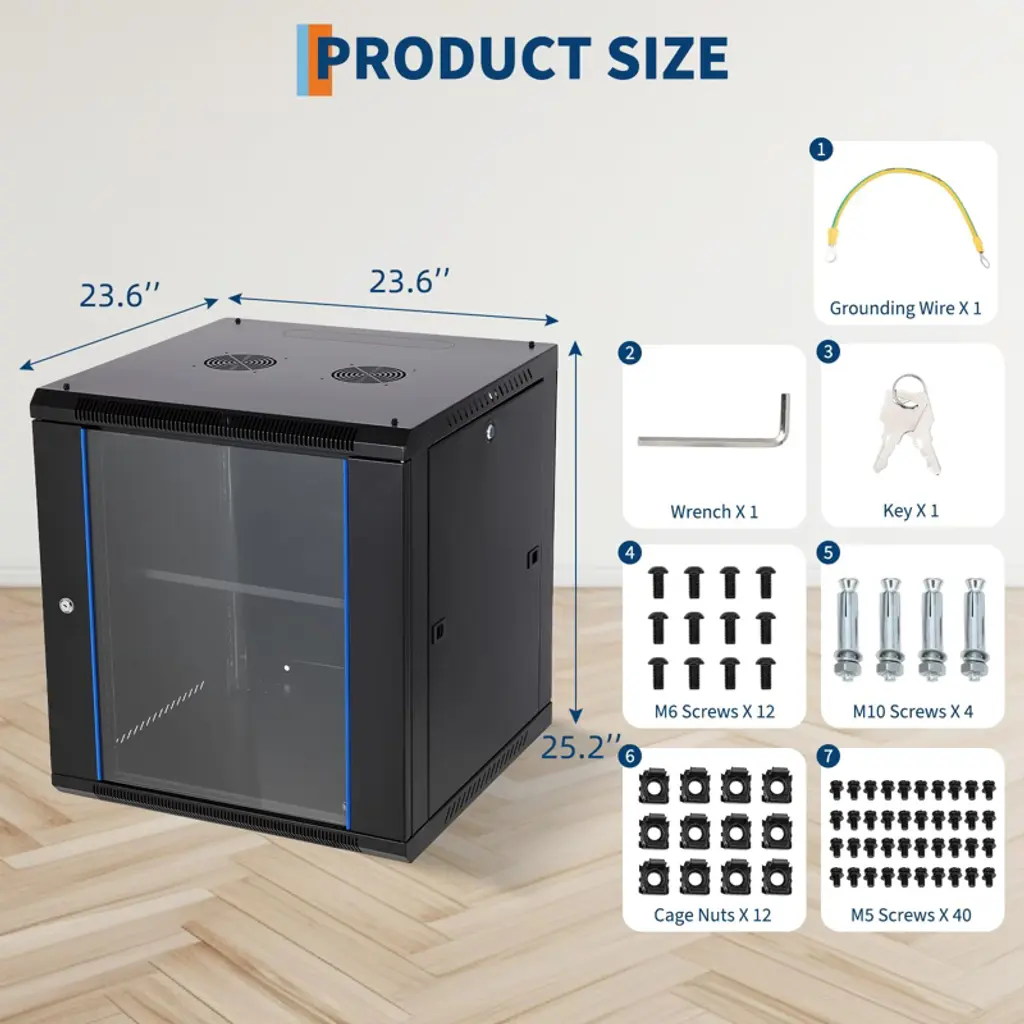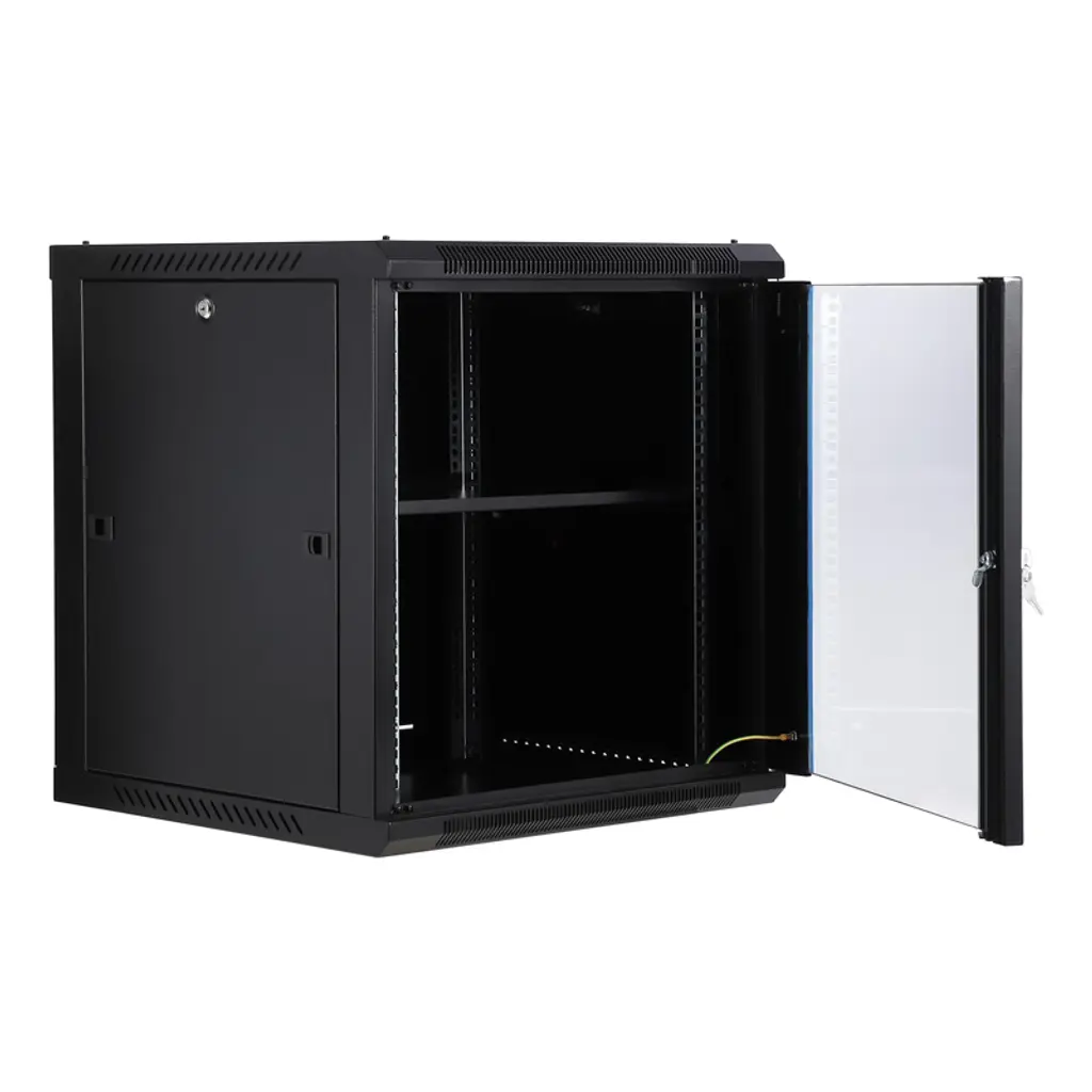 This network cabinet combines security and functionality in a space-saving wall-mount design, featuring a locking tempered glass door and removable steel side panels for full equipment access. The deep enclosure accommodates standard IT and AV gear while maintaining clean cable organization.Key Features: Optimized Airflow: Multi-directional ventilation (top/bottom/rear) prevents heat buildup Adjustable Rails: Square-hole mounting rails support versatile equipment configurations Cable Management: Dedated routing holes with grommets maintain organized wiring Full Access Design: Removable side panels simplify installation and maintenanceSecure Storage: Lockable glass front door with key provides visibility while protecting equipmentIncluded Components: (1) Set of rack mounting screws (4) Rubber feet for floor-standing option(2) Adjustable mounting railsIdeal for network closets, server rooms, or AV control areas, this cabinet offers professional-grade equipment protection with convenient access for technicians. The balanced design delivers both security and proper thermal management for sensitive electronics.Assembly Notes: Tool-less side panel removal Compatible with most 19" rackmount equipmentPre-drilled mounting points for wall attachmentA robust solution for organizing and securing critical infrastructure while maintaining proper ventilation and easy serviceability.