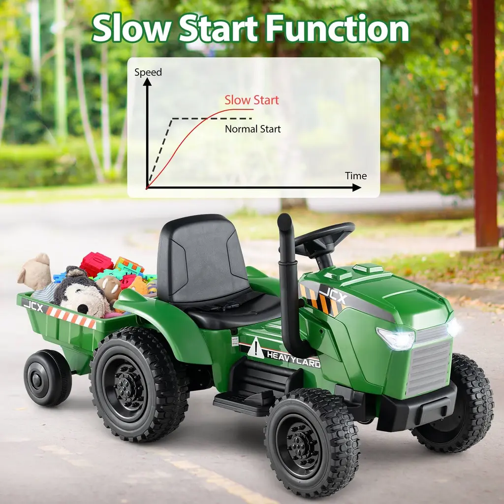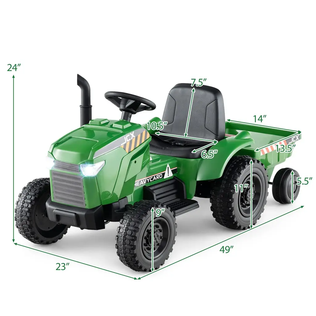 12v 2-In-1 Kids Tractor With Trailer And Remote Control For Ages 3-8 - 49" X 23" X 24" - Grayish-Green