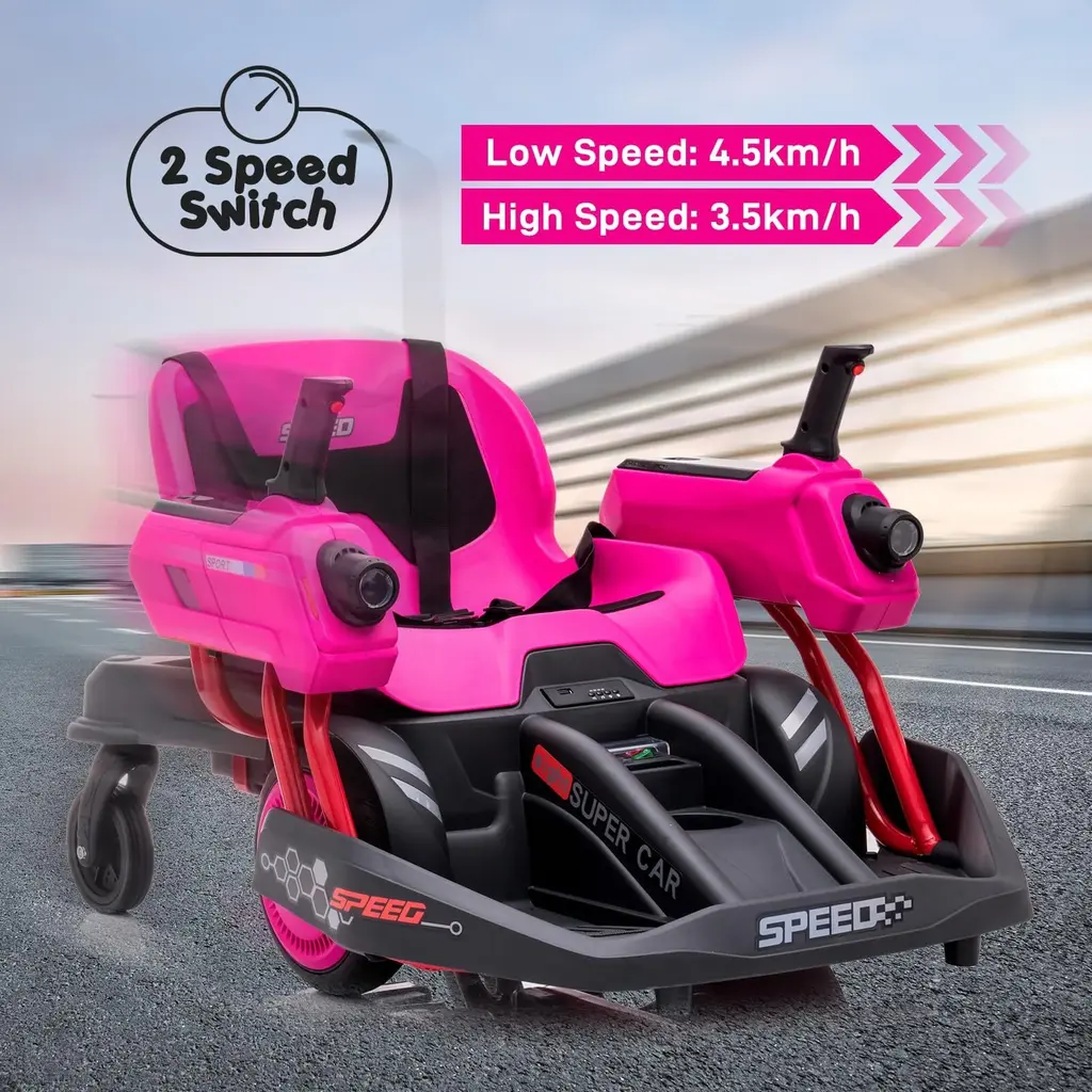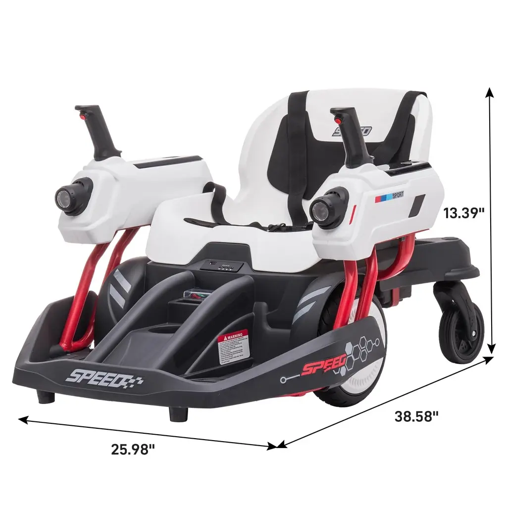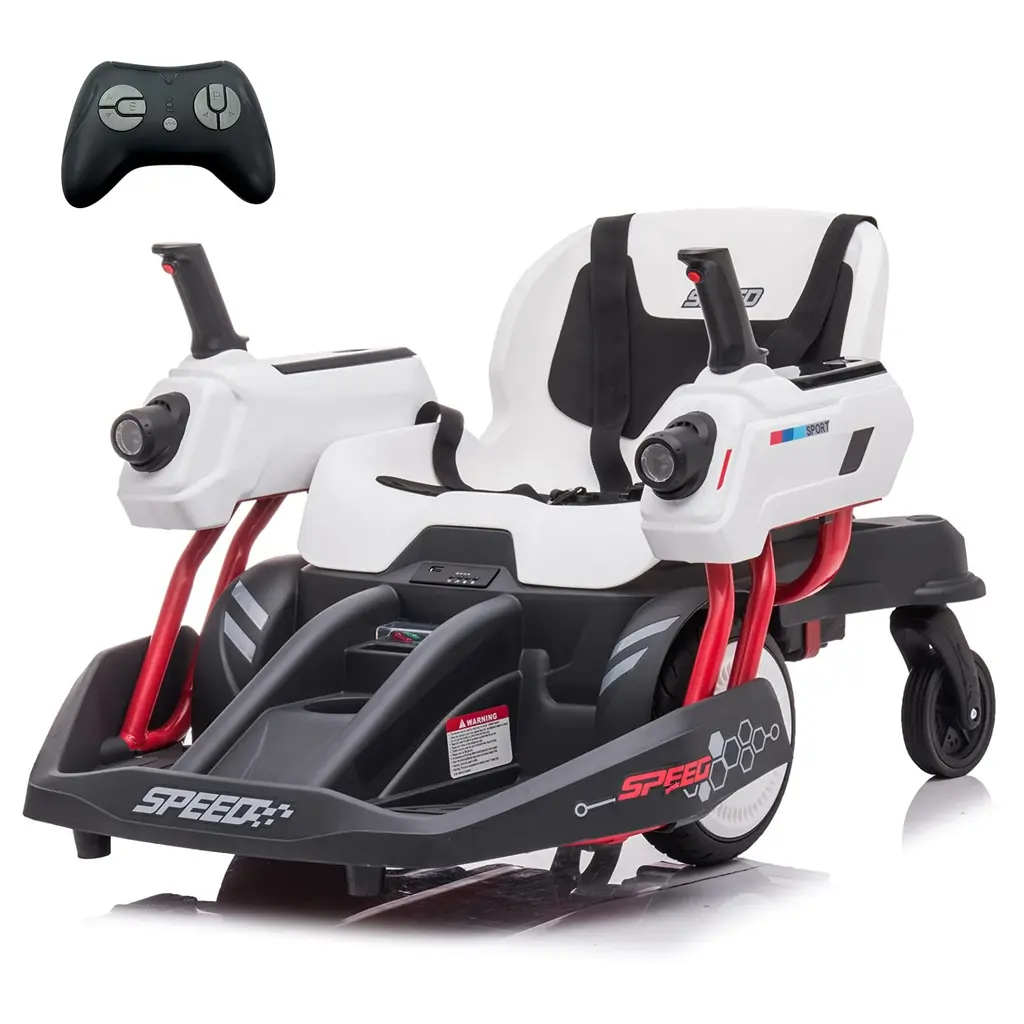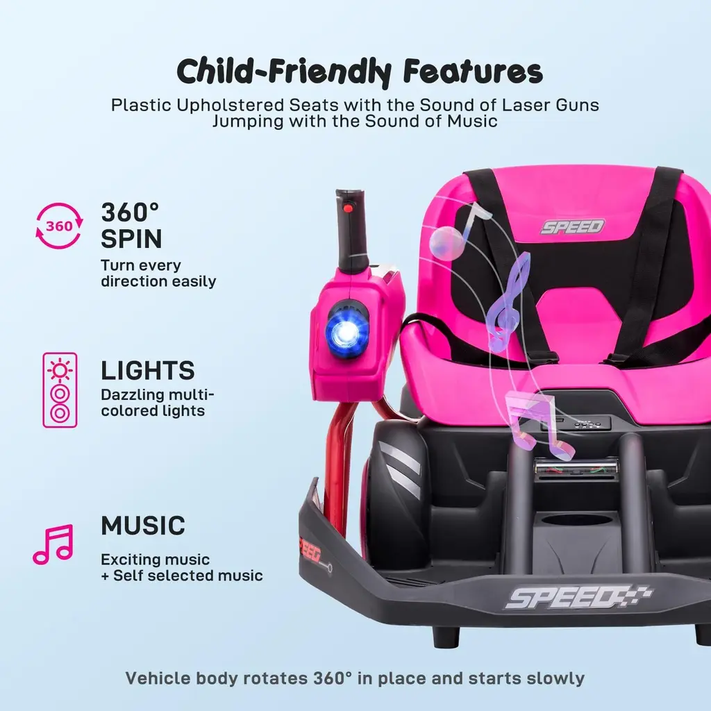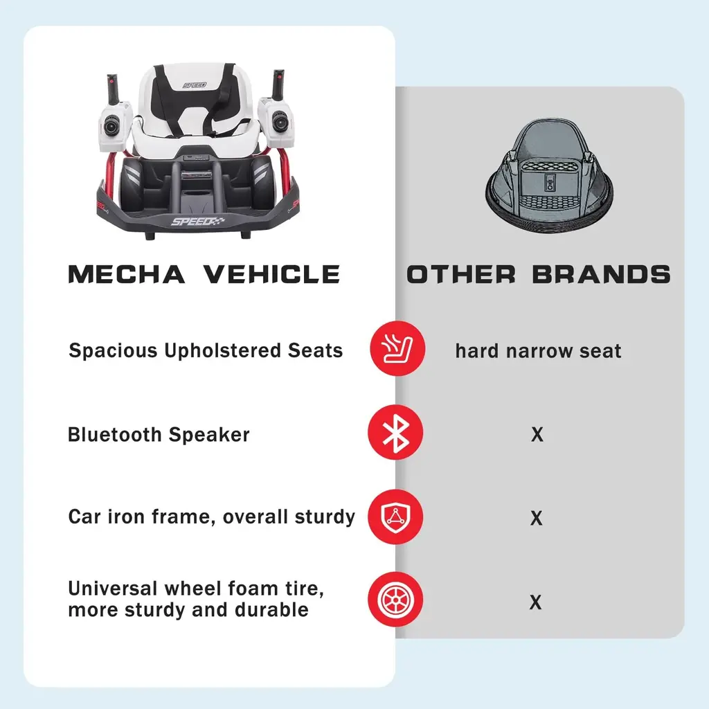 【Get Ready to Crash, Race, & Spin】With the super awesome mecha appearance and sturdy build, this ride-on bumper car is perfect for toddlers to have a blast racing, chasing, spinning, and crashing to their heart's content. Your child can enjoy the double excitement of drifting and shooting games in this electric mech vehicle.【Control with Joysticks & Smart Remote】The dual joystick control adds extra flexibility to the movements. Simply push both joysticks forward or pull them backward to go forwards, reverse, or spin a full 360 degrees. Kids can manually drive this bumper car, which helps improve their practical and coordination skills. Additionally, for safety purposes, it comes with a remote control that allows parents to navigate the car for younger children. Please note, manual and remote control cannot be performed at the same time.【Built-in LED Lights & Music】Experience the thrill of riding in this newly-designed kids' bumper car with its special blue lights and cool sound effects. The lights sync with the music, creating an immersive ride. With a top speed of 2.8 mph, this bumper car provides the perfect balance of fun and safety.【Safety Comes First】Our ride-on bumper car ensures a safer experience with its gentle start system, adjustable seat belt, and durable shell. The high-strength steel frame offers comprehensive protection for the car's body, preventing any deformations. It can support a weight of up to 66 lbs.【Suitable for Various Surfaces】This kids bumper car, equipped with universal wheels, can be used on a variety of indoor and outdoor surfaces, such as wooden and tile floors, concrete, and even thin carpets. Play with your children wherever you wish. (WARNING: To minimize the risk of injury, adult supervision is required. Never use on roadways or near motor vehicles, on steep inclines or steps, swimming pools, or other bodies of water)
