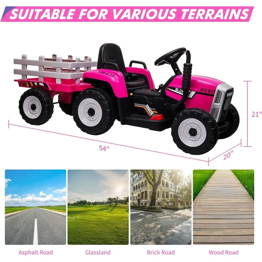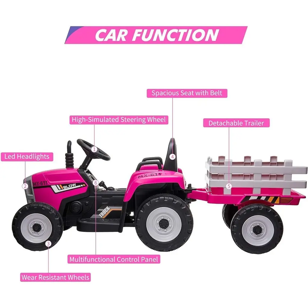 12v 35w Ride On Tractor With Trailer & Remote Control - Rose