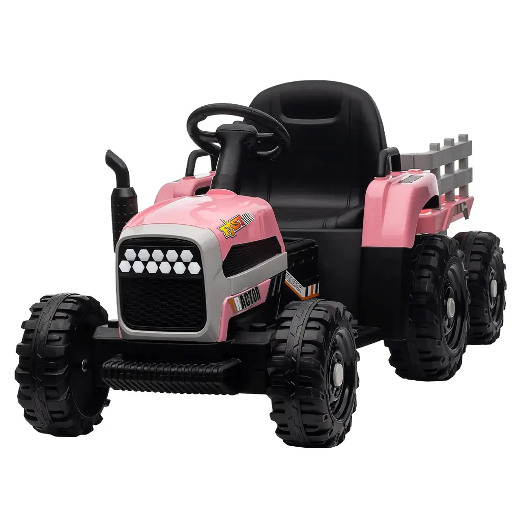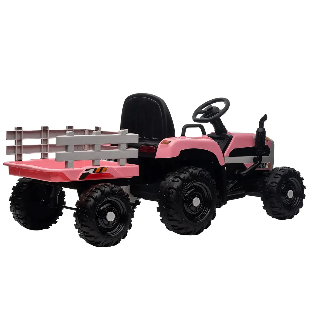 12v Battery Powered Electric Tractor Toy W/remote Control,electric Car For Kids - 50.40''w X 23.23''d X 21.26''h - Rose Red