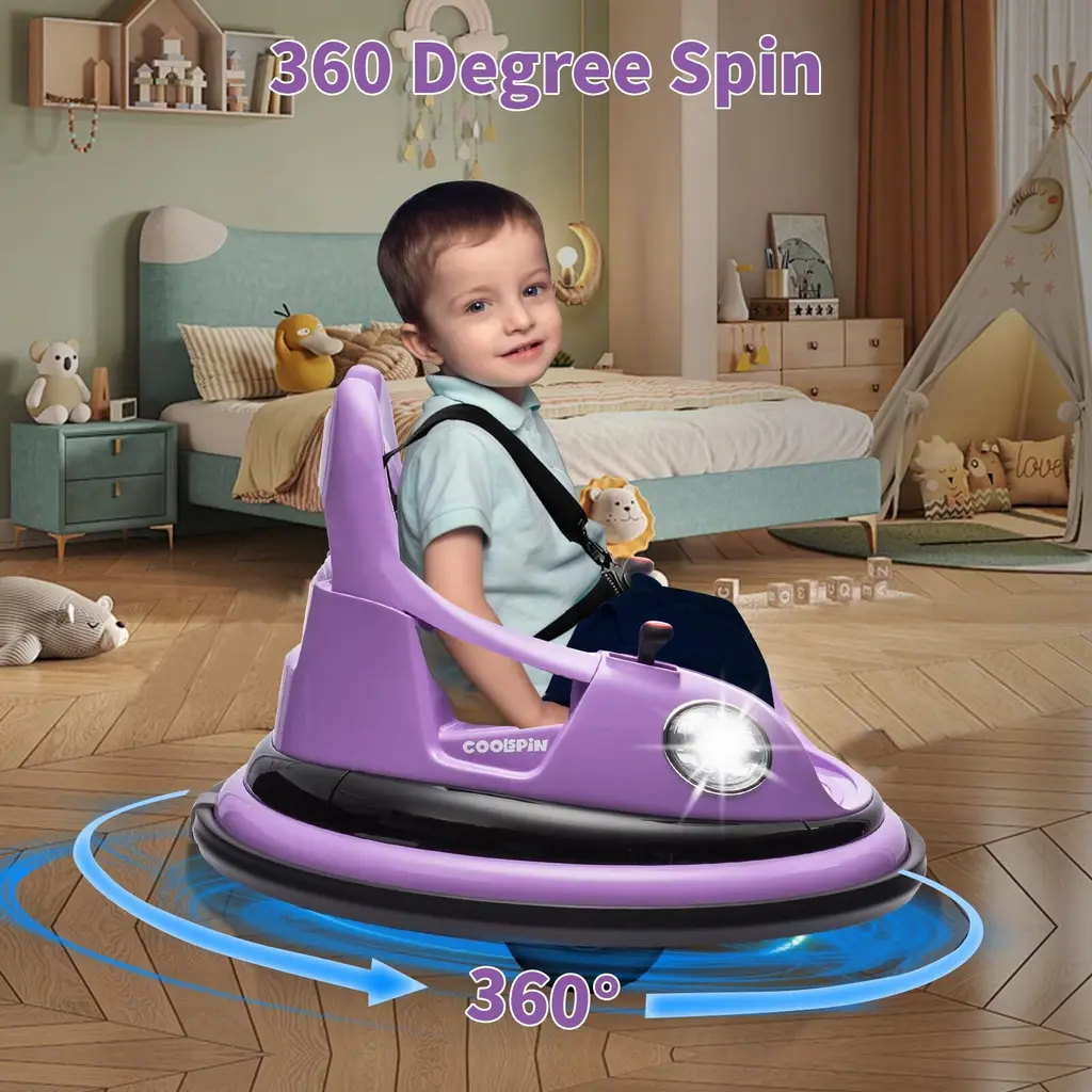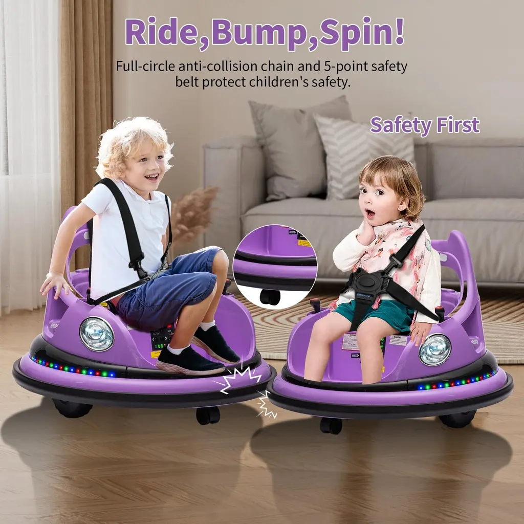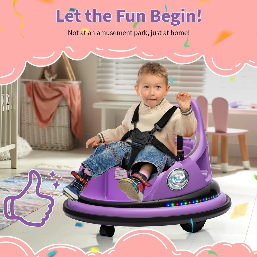 12v Electric Kids Bumper Car W/ Parent Remote Control, Led Lights, Bluetooth Music & Anti-Collision Padding (Ages 1.5-5 Years) - Purple